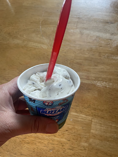 Read moreNever been unsatisfied with DQ products until today. The customer service was great and the staff were very polite. Typically when we order blizzards the DQ staff usually holds it upside down to show how thick it is and they didn't do that today. One of the small blizzards we ordered was already melted almost like a creamy milk and my daughter was grossed out that she just covered it up and said she would freeze it when we got home. I asked for nuts on my banana split and typically the nuts that they put on a banana split are usually tiny and crushed. They actually put whole peanuts with the skin still on it which is kind of gross. I've never had that on my banana...