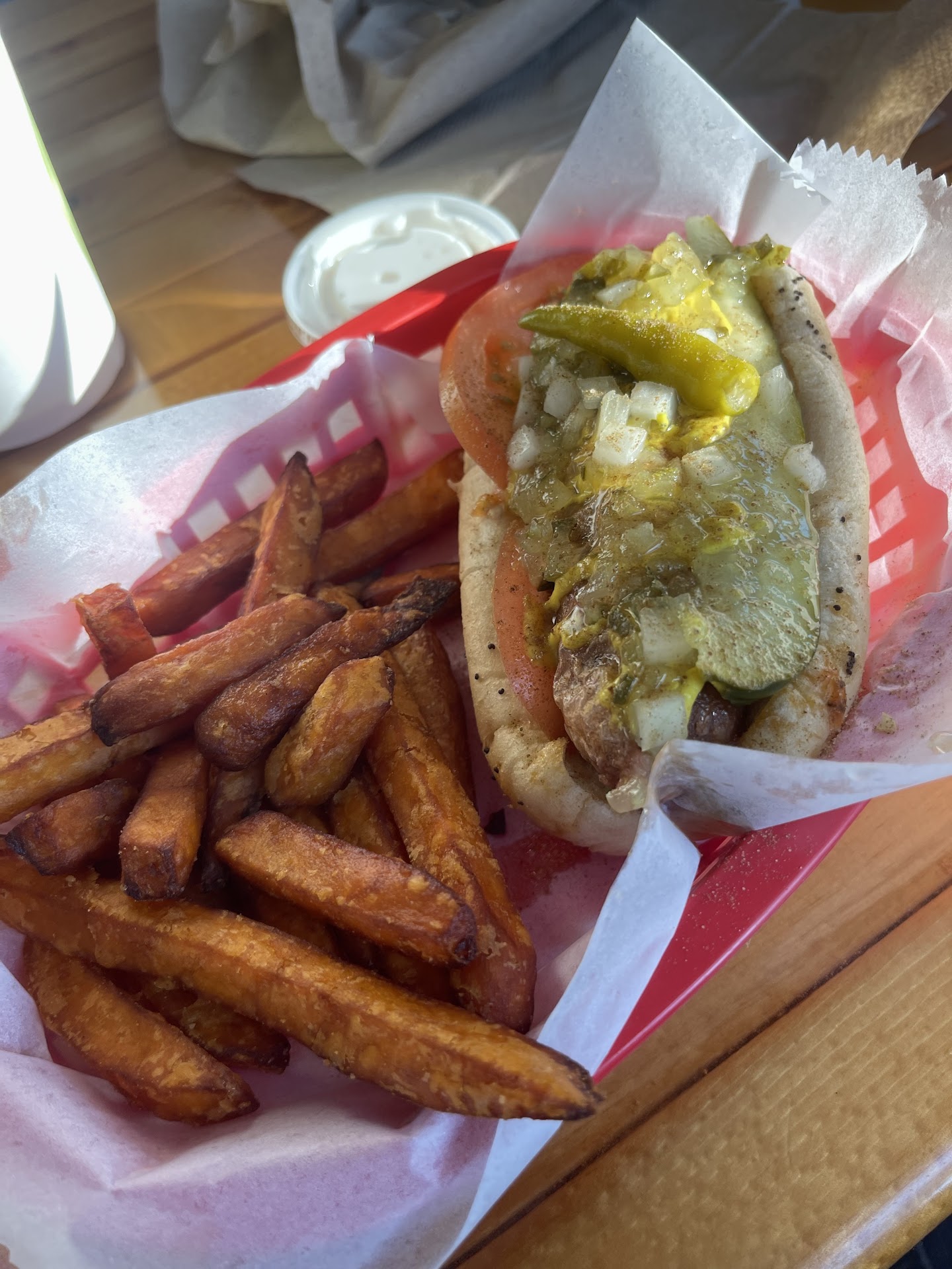 As far as the food, I stuck to primarily what they advertise, dogs and cream. the ice cream I stuck with vanilla to avoid the other flavors clouding my judgement and it was good, but not great. The consistency was on point for custard, but had very little flavor, nothing off-putting though. Also, I had a jumbo Chicago dog, which was probably one of the best I have had in Racine, and a side of the sweet potato wedges with the marshmallow dipping sauce, which had a lot of potential, but either should have had smaller wedges/fries, or more of the dipping sauce, but was definitely a delicious concept I haven't seen done before.
