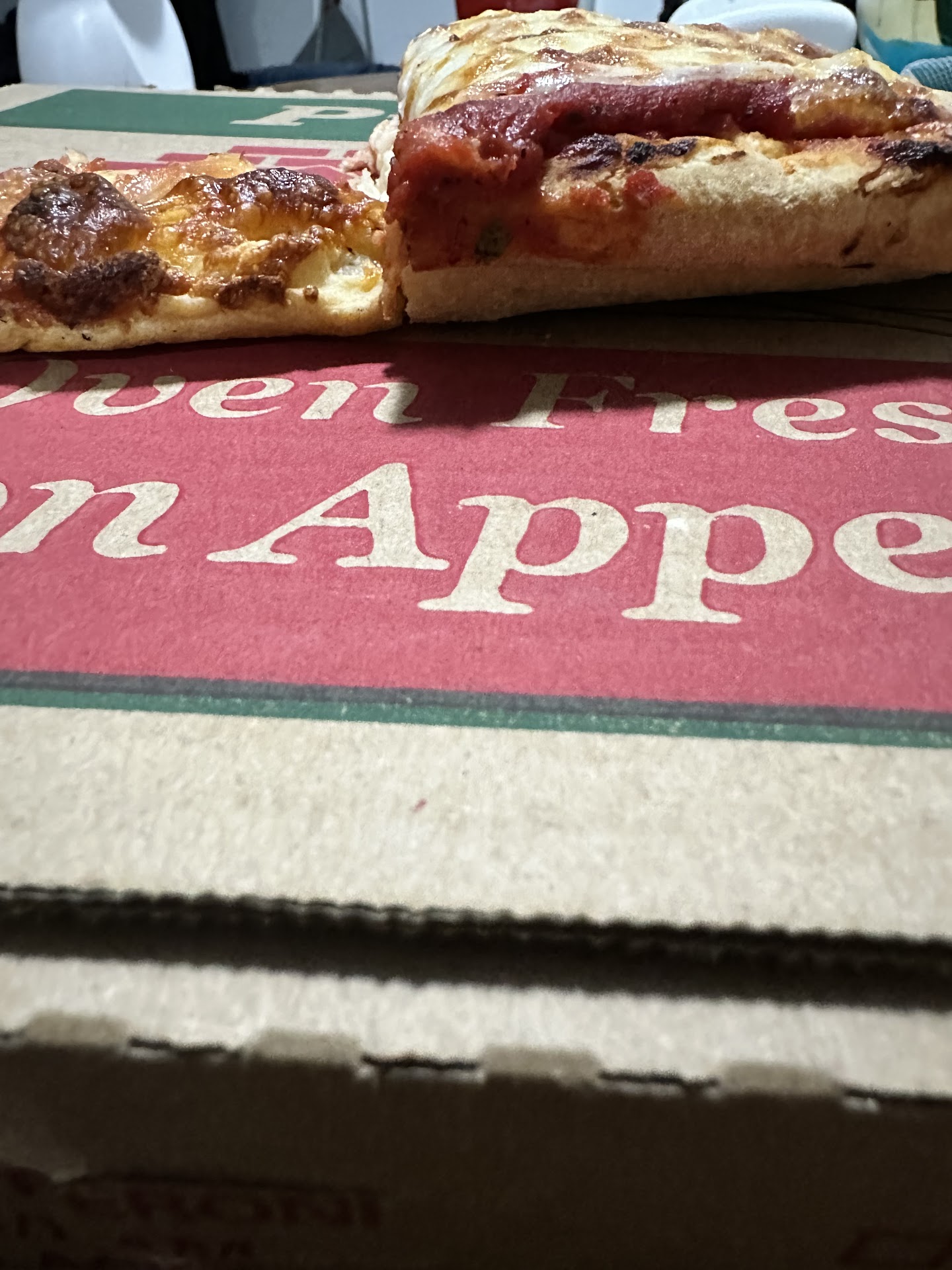 The party pizza used to fill the box, from edge to edge, they were huge and 6 our of the last 8, on separate occasions, had over 2 inches of space from edge of pizza to box. I swear we have been getting larges.