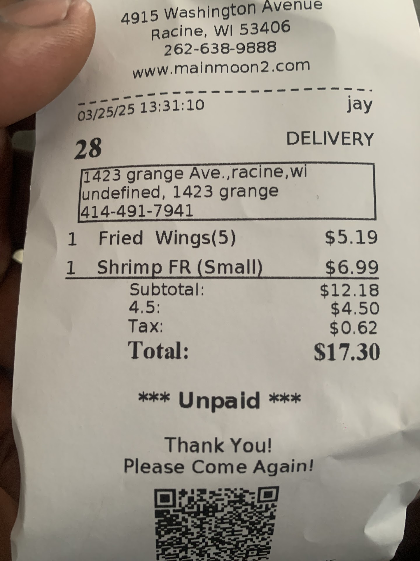 Read moreDisappointed. You can do better Main Moon! I could say that about 10 years ago they had fresh produce and everything tasted amazing. With that being said, we ordered around $40 worth of food and I'm disappointed. Why are you using CANNED mushrooms in your chop suey?! Why are you not using fresh ingredients? Why did the snow peas look overcooked and olive green? The chicken tasted reheated. Are you cooking this in a crock pot and leaving it to scoop? It was bland, no flavor and tasted reheated, not fresh. Where is your spirit and passion for food? I used to look forward to ordering from you and hands down you were the best in my book. Now your ingredients are not top notch, your food is overcooked - where did you go wrong? It tasted less than on par. It fell very short. Service was good, order was correct but for the love of PETE, you can do better!!! FRESH INGREDIENTS. None of this canned stuff and precooked veggies. Make it fresh - every. single. time. :( Please work on it. I want to return but sadly will not until the quality improves. It's just not worth the amount we paid to get canned or low quality cooked ingredients when this impacts...