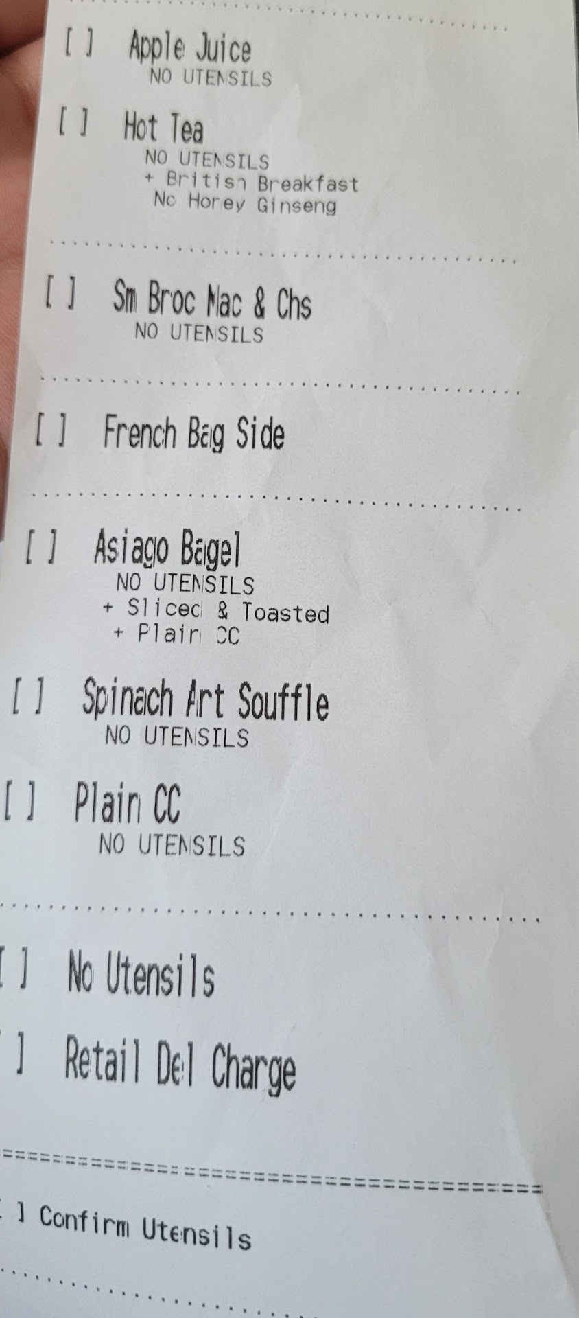 When I provided the young cashier with the last ame for the order she just stared at me without saying anything for a long time, I realized she didn't understand or hear what I said so I proceeded to spell it out and also gave her the first name; for some reason she decided that was funny and laughed before going inside to check on the order.