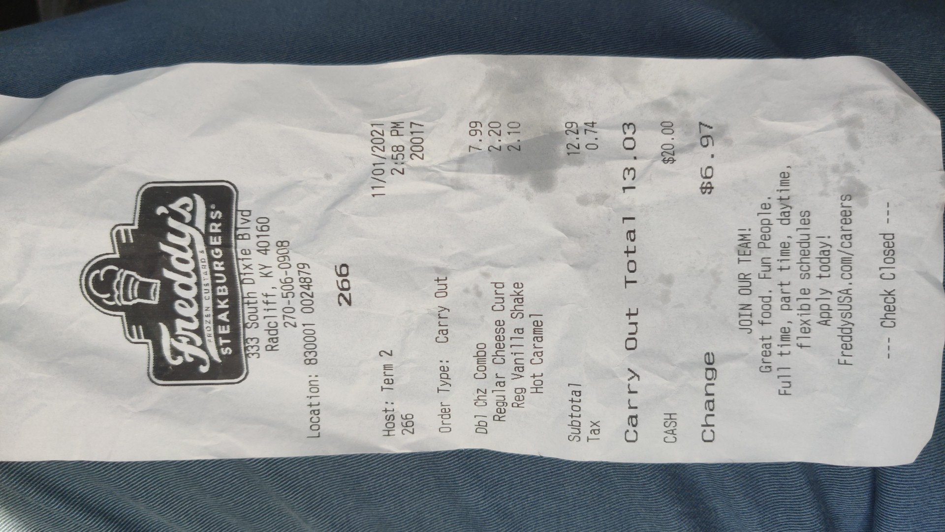 Read moreI can’t believe this Freddy’s location is still opened. I spent $13.77 for a burger, fries and regular sized strawberry shake. I drove 20 miles out of my way because I remember how awesome Freddy’s was in Colorado. It took a while in the drive thru even though there didn’t appear to be anyone eating there at the time. I’m guessing that time was spent making my shake, which turned out to be the only edible item in my order. I pulled over and parked in an adjacent parking lot and took out my fries first. They were STALE and COLD and so was my burger. I’m in shock that this is the same establishment that I was used to in COLO. I kept wondering why this location always looked absolutely abandoned, since any other location that I’ve been to has a line around the drivethru and inside the restaurant at any given hour of the day. I think I’ve figured it out now. What a shame. I passed several great hamburger locations, just to have that Freddy’s awesome burger and those amazing match-stick fries that I used to crave!! To spend an outrageous sum of money for garbage food is completely unacceptable! I ended up eating at another burger place because of such a horrible meal served by Freddy’s. Needless to say, I highly suggest that people reconsider their choice to eat here! Especially when the cost is so high. I ended up drinking my $13.77 by way of a very good, but outrageously expensive when that was the only item that was edible. This is certainly not the high standard meal that I used to enjoy, it rather a poor excuse for a meal. I don’t know if the teenage employees or the management or owner of this location is to blame, but they need to get out of the food service industry if this is what they consider a good meal for the...