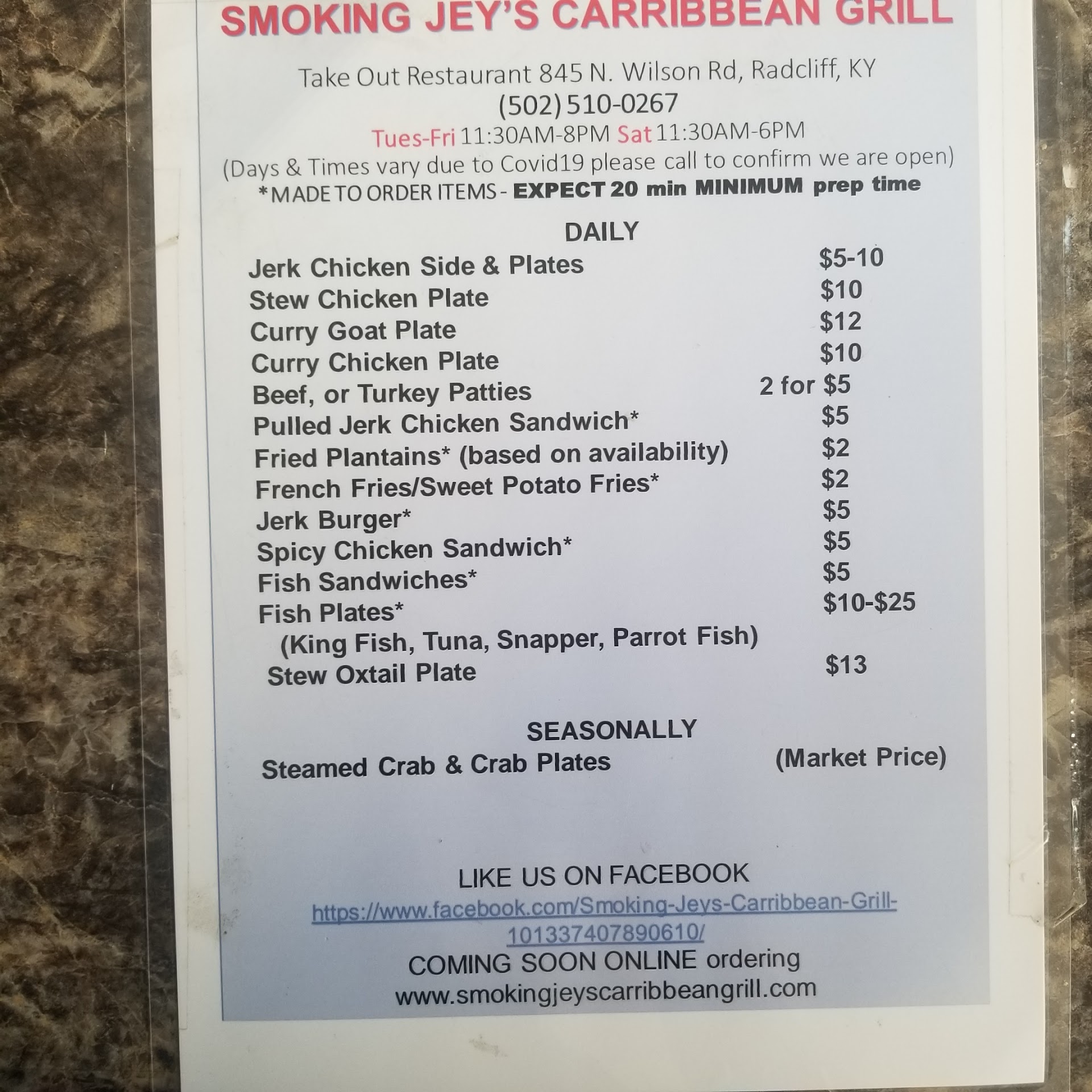 Read moreMy wife and I visited yesterday looking for something new to get us out of the house. While Smoking Jey's is a takeout restaurant, right away the smell of jerk chicken and spices hit our nostrils and got us ready.