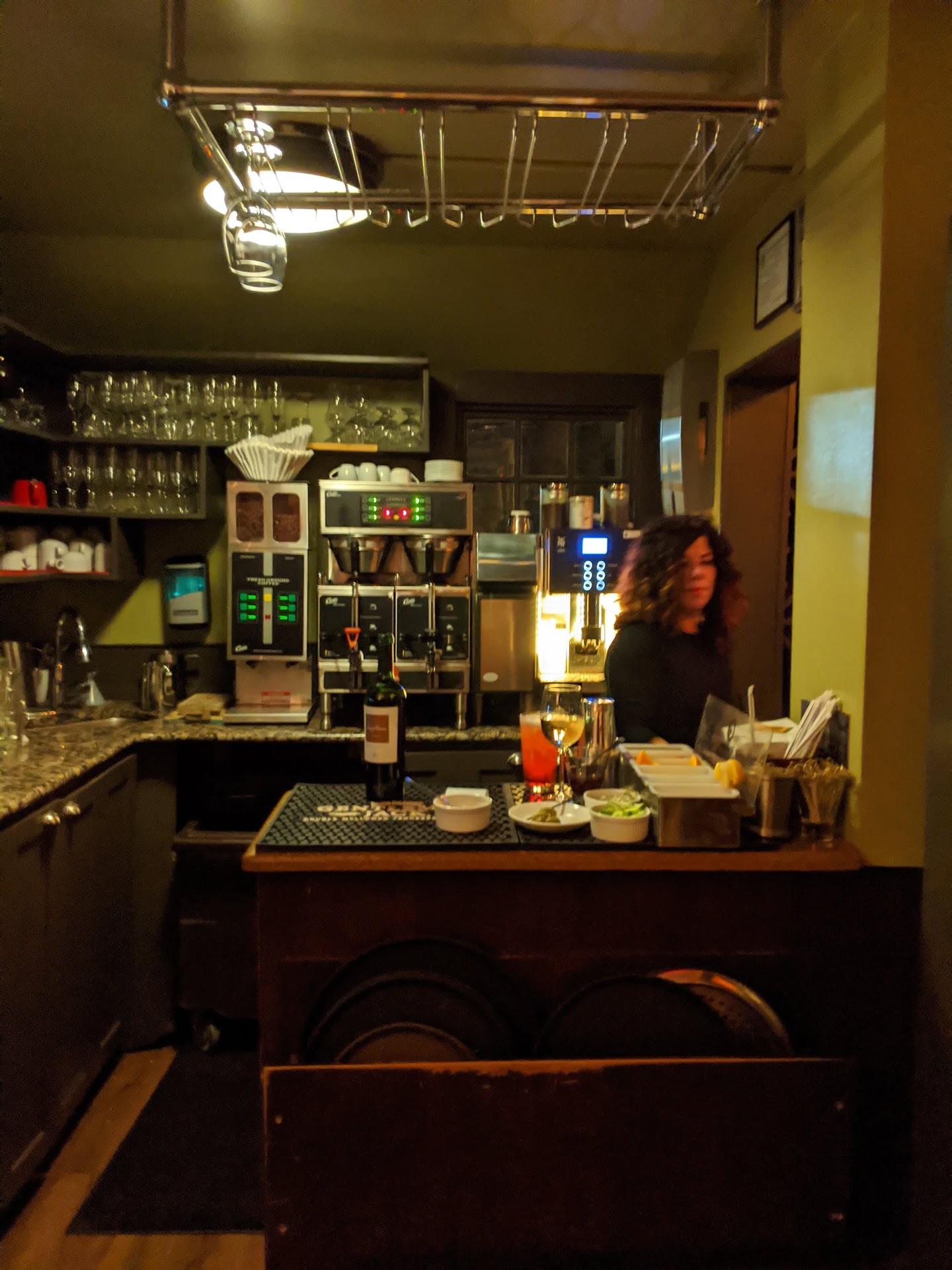 Great date night spot. Apparently 333 Belrose has been around for almost 30 years and I’m just now hearing about it. Our server Keira (not sure how to spell her name) was great. Had awesome recommendations and patiently answered any questions. Food was fantastic. We started with the calamari and black bean soup. Both were really good. For dinner I got the Java pork tenderloin. Cooked to perfection; tender and the sides were great. My wife got the boneless braised beef short ribs. Fall off the bone tender with perfectly complimentary sides as well. Both dishes were picturesque in their presentation. The service was on point, making sure that our waters never ran low and were never needing another cocktail or glass of wine. All of our drinks were fantastic. My wife got the “untitled vodka cocktail” which was delicious. Very cool decor inside with some eclectic paintings on the walls and a wine wall which made me want my own. This is a definitely “save for the future” visit kind of place. Can’t wait to try more entrees next time.