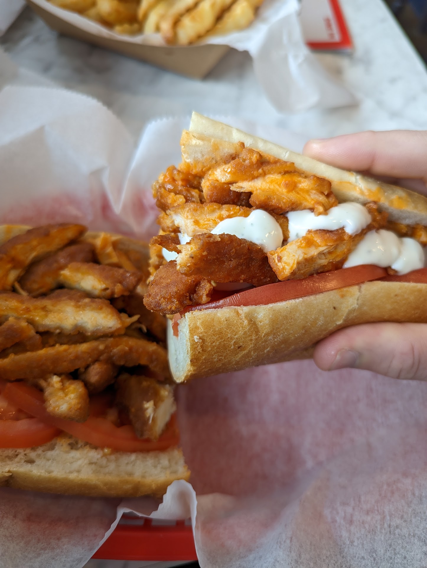 The sauce is in the sweet side, which is fine for me. Taste a bit like watered down Don Pepinos with added sugar. Cheese was good, though on the thin side. They didn’t have much meat but put a decent amount of onions on…. But again, no jalapeños.
