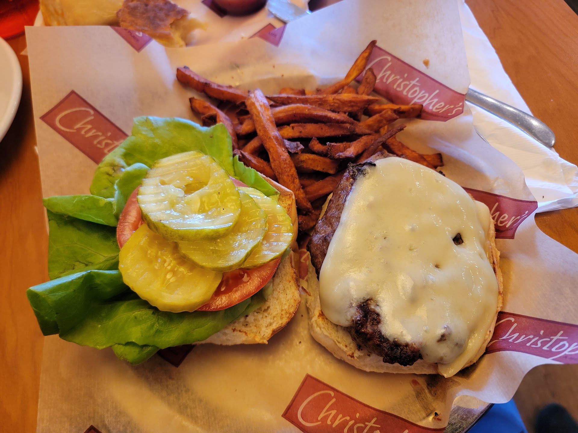 The burgers were over cooked despite asking for medium. We didn't get fresh fries on our plate but the burnt ends of fries intermixed with some real fries. We would have told our waitress but she hardly came over. I was half way through my burger when she finally came to ask how our food was. They had forgotten to give me Mayo and mustard because, boy, my over toasted bread and dry burger needed it.