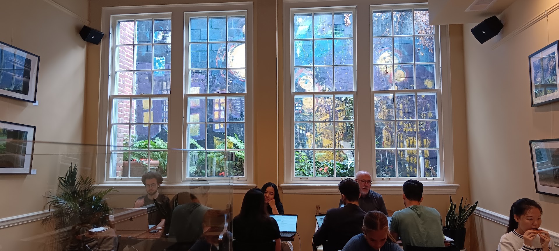 Read moreWe always walk past the Gryphon Cafe, so I thought it would be nice to try it one day. It was difficult to get through the cafe because the tables are crammed together and you're forced up against people like sardines. The ceiling fans were going full blast when it was 30 degrees outside (older folks had their coats on); it just wasn't comfortable at all. The staff were friendly enough, but they were also visibly overwhelmed which resulted in the space not being clean or kept up for new patrons (everything was overflowing). The upstairs bathroom looked like a scene from a HORROR movie. I crawled all the way up the stairs and have a 68 year old bladder, so I had no choice but to use the facility. No place to put my purse and it smelled something awful. I didn't mind the urinal, but I did mind how dirty it was. If they're not cleaning the bathroom, what else is not being cleaned or seen to? I love the idea of supporting local businesses, but this place needs a lot of work and more staff. I left two stars for my re-full and the convenient outlet next to my table for my tablet. PLEASE, please clean this cafe and the bathroom. There were young children and senior citizens who are the most vulnerable to germs...
