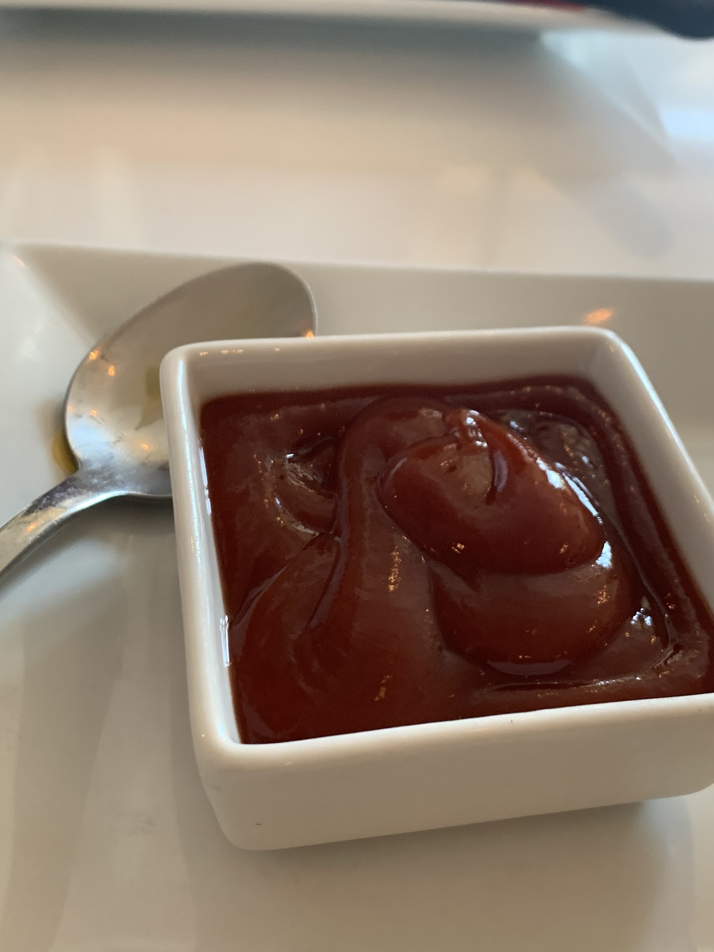 At the end of the bar, where I sat was a gathering place of employees passing through, which was fun to watch. In the meantime, at the bar, I also met a very nice young man Justin who as you know, works for you. He was is having some dinner at the bar. He was very kind and engaging. Between Justin and the employees, it made the odd experience with bartender (Maddie) better. Hubby showed up, and we experienced the same dismissiveness by Maddie, just trying to get a drink 🤔! Once again, I had to call out for a drink! We talked about dining inside or just going elsewhere, but we decided to stay. Big mistake!!! We ordered tuna dish (Justin recommended) and meatballs for noshing appetizers, then ordered 2 meals for dinner. Out comes the two dinners first, then the tuna, so I said we ordered apps first, then meals. Because everything was coming at once, I said to the server, "I'm sorry, but just forget meatballs."