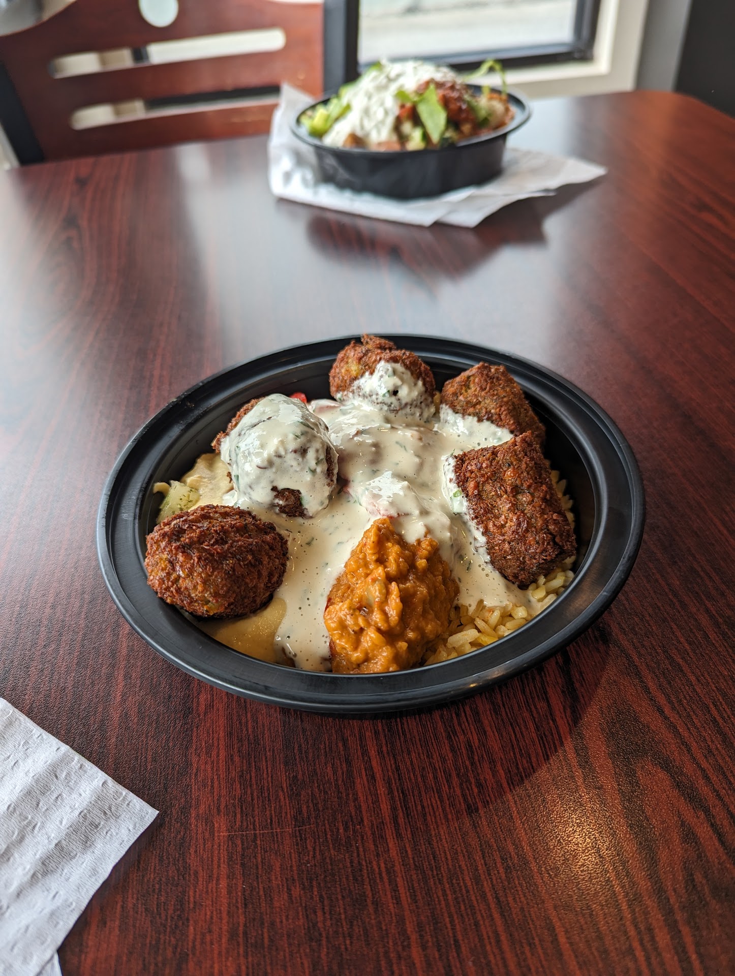 Leaving this as a note to myself: the food is okay, but it's definitely overpriced. $5.95 for mediocre fries and a medium soda? $13.95 for a pita with some toppings? Meh. I was going to get a rice pudding, but I couldn't justify the additional $4.50.