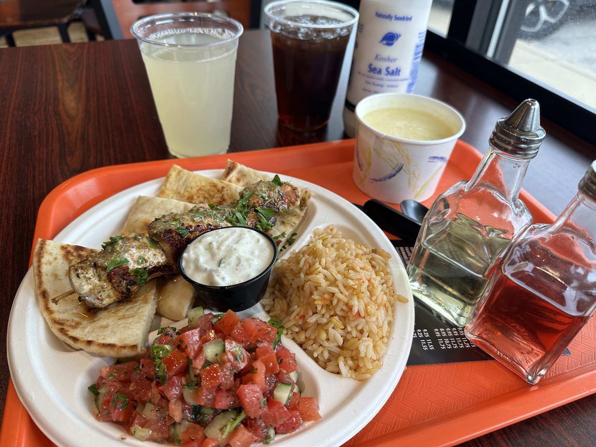 Read moreOff the charts good - seriously, this place is the real deal. Don’t wait to try it like I did. Costas and his family, including his beautiful mother, are doing authentic Greek food with the honor and respect it deserves. I can’t believe this was my first time here, but I guarantee that I’ll now be a loyal regular…and I don’t just live around the corner. It’s worth the drive. I got the Lemon-Chicken Soup (Avolegmono) - I couldn’t get enough of it. Chicken Souvlaki platter came with warm pita, tomatoe-cucumber Greek salad (I don’t even like tomatoes and I couldn’t stop eating this piled onto the pita with a tzatziki shmear), and a delicious rice pilaf. Ten out of 10 all around. Chicken was flavorful, moist, and plentiful - grilled to order and presented with intention atop the warm pita. But, wait - fresh, homemade lemonade - trust me, if you get it, you’ll want to come back JUST for this. Plenty of seating inside, but seems like they probably do a robust takeout/delivery business. Introduce yourself to Costas - you’ll be...