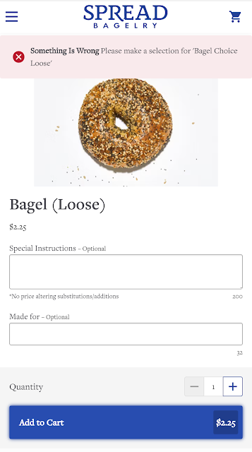 Read more(update: A few minutes after posting this review, Spread's ordering system seemed to be working again. But it was more than an hour after their opening time. This seems to be a recurring issue, perhaps with staff entering into the system that they have bagels available? Or perhaps it's purely a tech bug? It feels like this has been going on for 6+ months, and given that they don't answer the phone (and the lengthy wait for in-person orders), it is tragically a dealbreaker for folks trying to grab breakfast or lunch during the work day.)