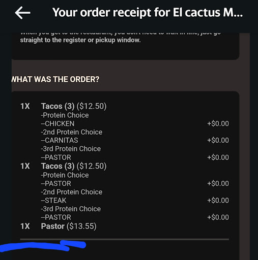 Read moreTried it for the first time yesterday. We got the three street taco plater. Selected chicken, beef, and pork. Chicken had the most flavor, then the Pastor, which I would recommend both. However, the pork "carnitas" was not my cup of tea. Too much fat and gristle, I had to toss it. We also had ordered a burrito, but the order was delayed because it was initially missed, and I think it is the way the online order recorded it. We will give them another shot with other dishes... will keep you...
