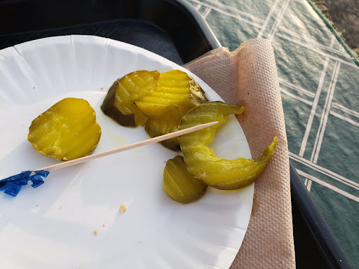 Watch out ladies and gentlemen!!! In my opinion I think this place thinks its funny to place obviously bitten pickles on your plate. Or maybe they are reusing the pickles that other customers haven’t finished. I’m guessing pickles are expensive and they refuse to waste them. And don’t you dare even think about complaining to the manager about having someone else’s bitten food on your plate. They get incredibly upset if you don’t immediately pop that germ-infested bitten pickle in your mouth and enjoy it. I tried complaining to my waitress Gina about the pickle and she tried to sell me on the idea that the pickle “just fell apart like that”. Then she started almost yelling at me “wellll- what you want me to do- make you another one without that pickle- or you want me to remove the pickle”. Things got worse when I asked to speak to the manager – Apparently, Gina is the manager. I asked to speak to the owner and another waitress told me that Gina was the owner (or “her family owns the place”) and there was no way to go above her. I couldn’t believe it. She was so nice when she first came to my table but then got extremely rude (in front of my wife and 4-year-old) as soon as I pointed out something was wrong with my food. In the middle of our conversation Gina abruptly walks away screaming “I am the manager”. She then never comes back to my table – not even to get the check (keep in mind we are sitting at one of the tables outside in the parking lot). She doesn’t even send another waitress to come help us leaving me to go inside and ask for help. At one point it seemed as if she was teasing us with the fact that she wasn’t going to help us because at one point she decides to stand about 30 feet away and scream “are you good” but before me or my wife were able to answer she once again walked away abruptly. I think she might of mistaken us with one of her other tables and when she got close enough to see that bitten pickle still on my table staring her right in the face she realized it was us and walked away as fast as she could. Its was an incredibly rude experience in front of my family and honestly I wonder what else they may be reusing from the stuff other customers don’t fully eat. Sad – Check out my pictures of the pickle and tell me if you think “it fell...