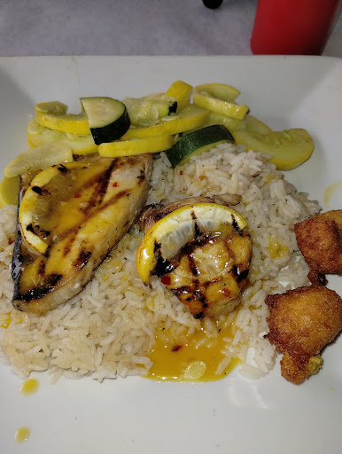 I ordered the grilled swordfish with orange sauce on rice and boiled zucchini and squash. They give it to you straight up so if you want to add salt and pepper you better put it on there yourself but it was definitely a quality meal.