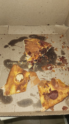 The poor experience didn’t stop there. Once I received my order my two topping pizza was wrong and the stuffed cheesy bread was anything but stuffed. With the amount of burnt cheese atop and that fell onto the pan while cooking, coupled with the half baked dough, it was clear their oven was set too high. AND there was practically no cheese between the under cooked, folded over dough!