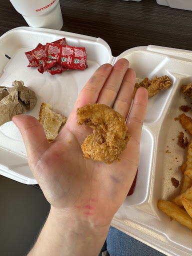 Sit tight for the long review but man this place can't get it together. Absolutely awful! Used to enjoy it there but the food has had a major decline in quality every time I give it a chance. Small tenders that are mostly breading, cold and burnt fries, cold burnt toest, and the coleslaw is always a nightmare. Never know what you're gonna get, watery junk or dry cabbage. To top it off the staff just gets worse and worse. The front counter workers are always quite rude and impatient and look anywhere but where customers are approaching so you have to call out to them because their phones are the priority. They staff also has very loud, rude, and inappropriate conversations containing profanity, putting others down, alcohol use, who had sex with who, and weed use! Now they can talk about the at all they want on their own time but it's not exactly what me or my children want to hear while trying to sit down and eat. I've attempted to speak to someone in charge to inform them but it appears the ones in charge act just as bad. A girl, younger with curly hair acted as if she wanted to fix the issue. She had quite a rude and rushed tone but i understand some people talk that way especially at a busy workday. I asked politely for an extra sauce because they failed to give me it and before I could get a word in about the language her employees were using and the volume of it with children in the store she walked off without a word! I tried to get her attention again and failed. When she finally came back out I didn't bother due to a wave of customers and my own annoyance but she kept that snippy tone with every customer. You could tell multiple of them were thrown off. Getting your order taken shouldn't feel like a passive aggressive scolding especially when the customer was polite. Don't get me started on the awful wait times. I've seen people waiting up to 30 minutes for two boxes. Things need time to cook fresh but the place is advertised as fast food. It's even painted on the wall how "fast" and "quick" guthrie's service is. If you're having restaurant wait times in your fast food establishment while you're not even busy then I'm curious what the kitchen staff is doing. The final straw was a particular time where my husband convinced me to give it a shot again because we've had some good food there and he was obsessed with hope. Lo and behold there's the workers hitting their little vapes behind the counters without a care in the world. I walked right out. Tried to give the place many chances because it used to be good but I guess good things can't last forever. My advice, better tenders and get new staff. I saw two decent workers at front, a tan skin girl and a girl with glasses. Polite, easy to order with, attentive, though I only saw them that once and they definitely liked their phones more than I think employees should, it was still a step up. At this point it shouldn't get worse but it also has hygiene issues. Bathrooms are absolutely yuck, what looks like spit all in the sinks. The two flies that I saw come out from being trapped under their cups that they then poured drinks into and served wasn't pleasant either, nor were the black specs in my child's water. Then the gnats! Ugh. I normally am not one for reviews like this but it was definitely a favorite and it's had a very awful decline and I've noticed more and more people complaining so why not give out a proper warning. Don't go!!!! Far too hit or miss and boy are the misses frequent and the prices have been jacked...