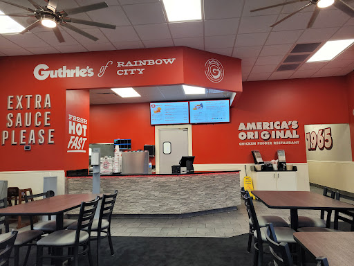 Read moreI have always felt like Guthries is the most overrated chicken finger joint in the land. Even though they started before Zaxby's there are inferior in many ways. However today I was willing to give them another chance I went to this location Rainbow City in order to Chicken Box with a sweet tea my food. My food was ready in about 5 minutes and the girl brought it out in a box even though the food was to be eating there which is what Guthrie's does. There was no drink present but there was a stack of stack of Styrofoam cups beside my meal so I got one of these looking for a drink machine thinking I had to prepare it myself. At that time some Gruff bearded fellow from the kitchen said hey bud you can't just take a cup like that... I responded that I ordered a sweet tea and there was no drinks finally the girl brought my drink to me and my mail was fine after that this dude reaction was ridiculous but other than that my trip was pleasant and the...