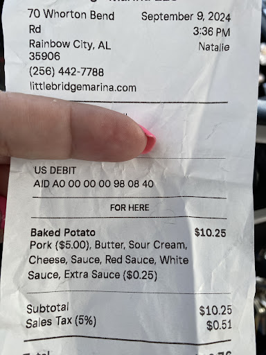 Read moreOkay, we have been driving by this place for probably two years and have always wanted to try it. Well, we finally got the opportunity. After going to an estate sale, we didn't feel like driving all the way into Gadsden. So we pulled into the Little Bridge Marina Barbecue. I have to say, I am glad we did! This place is a gem! Had the smoked beef brisket, along with hash brown casserole and baked beans, and it came with cornbread muffins. This may have been the best smoked beef brisket I've ever had. I was able to cut it with the plastic fork and knife that it was served with. When I first saw the plastic, I thought eh this isn't gonna be a good thing, But once I tried cutting it, the plastic knife slid right through the brisket. It was literally perfectly cooked. And I gotta tell ya, the hash brown casserole was great! And the baked beans had little pieces of smoked pork in it. Extremely tasty! I would definitely recommend stopping in to the Little Bridge Marina Barbecue on 77 in Southside, Alabama and having lunch or dinner, or carry it out to your campsite or to your picnic You will definitely not be disappointed! Oh yeah,...