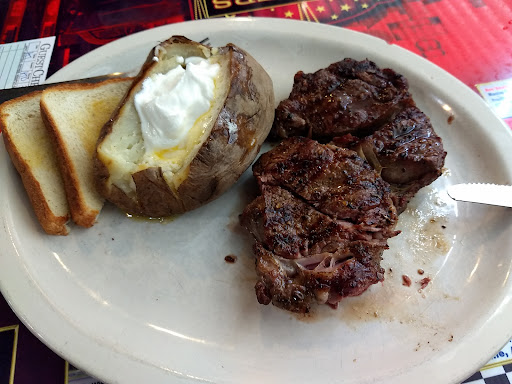 Read moreFirst the good. Waitress was great, shrimp ok and second steak good. Ordered the 12oz ribeye, the steak came out n was rubbery and full of gristle. Couple of things should be noted; this was the first steak I have sent back in 20+ years, so my tolerance is wide, second, I ran a steakhouse as my first full time job out of college and have prepared 1000s of Ribeyes, third I worked in the meat department in a local grocery and cut 100s of Ribeyes. The manager came to our table n tried explain that all Ribeyes are full of fat. When I explained that the steak did not resemble a ribeye he acted as though I didn't have a clue and was very condescending. You can judge from the pic was it a ribeye. Replaced it with the filet (with an upcharge and 17 minute wait). No apologies. Would have given a 1 if not for the...