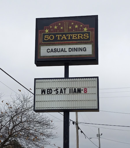 what a shame a good place with good food going down hill but like the saying goes all good things come to and end well it happend here i have been here more times than i can count always good but the last lets say 5 times haven't been the portions have gotten way smaller but the price either went up or stayed the same but why pay more for smaller portions like the bbq plates used to have a reg and large but now you get the reg for the large price i under stand the biden economy price hike but dont be stingy with the portions i dont mind paying for a good portion of good food i went to thatcher's bbq in Trenton ga big portions of good food like the pork plate and 3 sides at a reasonable price but back to 50 taters seems like every time i come here they dont have the fried taters # 1 you call yourself 50 taters and # 2 how hard is it to take a Potatoe cut it drop it in the fryer and fry them just like magic you got fried taters dont use the excuse of it takes time because last night i waited 25 mins on my pork baked Potatoe which is ridiculous while my family had already gotten and ate there food i had to wait and never got my drink refiled either but what does it do to complain because the excuse for 2022 is we are under staffed and they will charge you a fee if you pay with a card with...