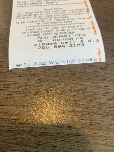 Read moreI work at the Super 8 in Rainsville and had a long night, my son was hungry and cranky, and so were my mother and I. We pulled up at around 6 AM, and were met with the super sweet Christy (I hope I spelled this correctly). She figured an order of hash rounds were for my 2 year old and sat them out a second to cool so he could eat them right away, it was soooooo wonderful of her, he was so hangry haha The customer service here was amazing. Best customer service I've seen out of any of the regional BKs in North Alabama. (From Huntsville, Madison, Scottsboro, and so on), we will...
