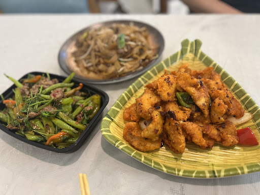 The amount of food is insane. I could barely finish one plate. The owner has renovated the restaurant, the atmosphere is modern and clean. The staff was really nice. She asked me to try the Hainan rice, which is yellow rice but they add ginger when cooking it. This was my first time having Hainan rice and I will probably order a Hainan chicken next time. They also sell homemade lemon tea. It's made of Thai tea which makes it look like orange juice, but it tastes great. The staff said that they added sugar instead of saccharin to...