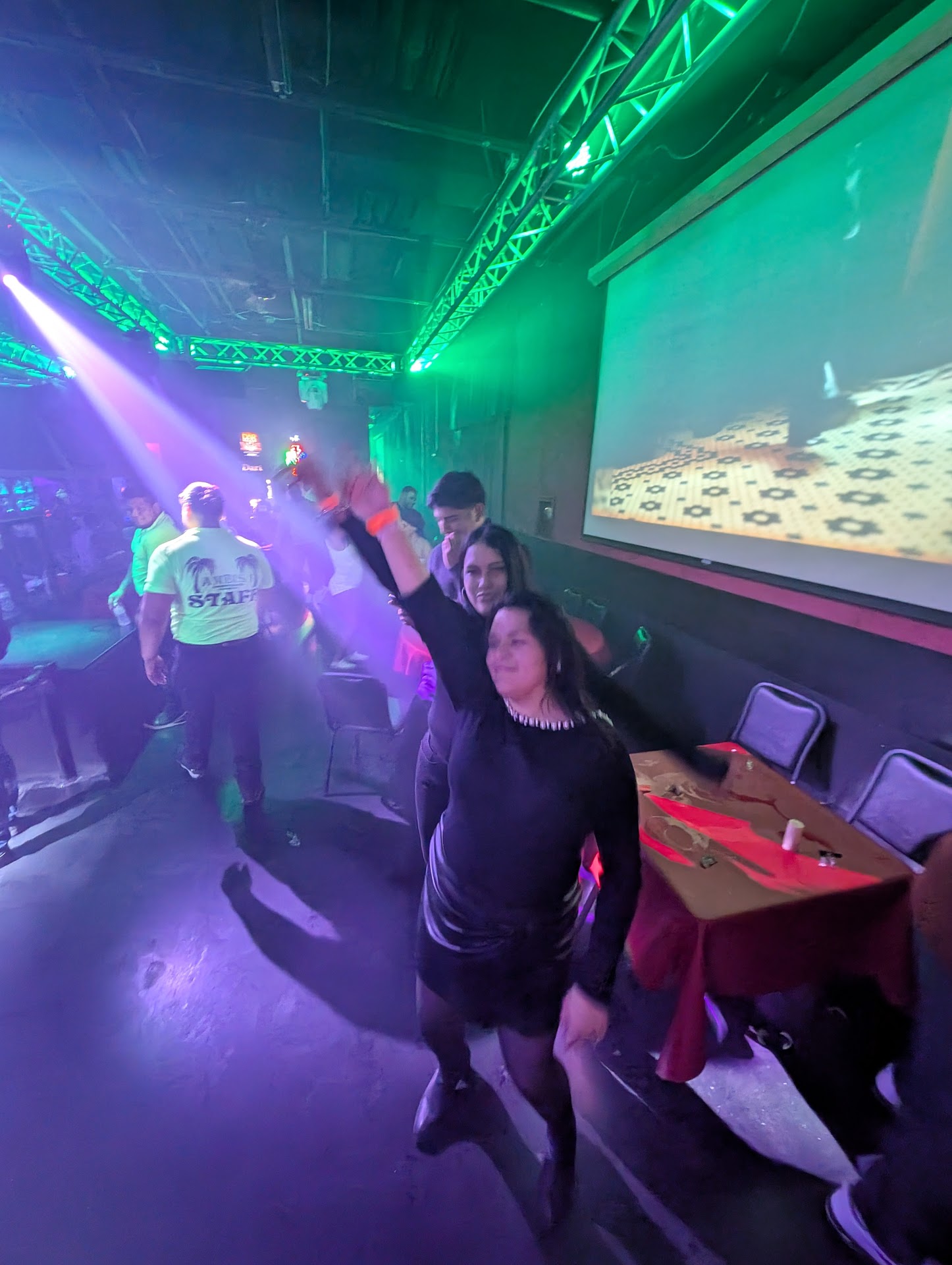 Mi esposo me acompañó al baño y me esperó en el pasillo. Mientras salía para regresar a la pista de baile, el bouncer con lentes se nos acercó y dijo que teníamos que movernos del pasillo a la pista de baile, obviamente al vernos caminar de regreso a la pista de baile. Cuando respondimos que nos estábamos quitando del camino, comenzó con comentarios inteligentes que no se habían pedido. Para resumir, ¡comenzó a meterse en la cara de mi esposo sin motivo y me arrancó el teléfono de la mano! Nos echaron del establecimiento sin ninguna explicación de lo que se hizo mal.