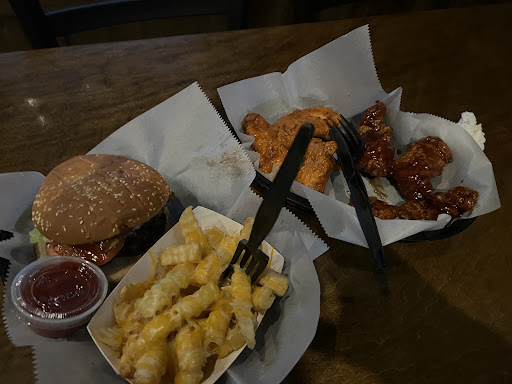 Read moreI was excited to try out a local wing spot with a late night menu right by my house. I was excited to see they had outside seating since the weather was perfect for enjoying outside. We walked in and spoke to the hostess and she was extremely friendly and even though it was the end of her shift, sat us outside with menus. She even told us bye when she was leaving. Our waitress was just horrible. She was prompt getting our beer, but after that she disappeared without even asking if we wanted to order food. (Even though we had menus that we were clearly looking at). My boyfriend had to go inside to get her so we could order. She came back outside and was very blunt and rude. I had to ask for another round of beer when she dropped off our food even though she could see my glass was empty. I have been a server for over 8 years, I know how it is sometimes, but please do your job regardless of how bad your day is. You make money by being polite and prompt, not being rude and just straight up lazy. Later on that night, our card got stuck in an ATM and we had no way to pay for our tab. She was a complete a-hole about it, and was so rude I almost walked out. Thankfully, a sweet couple over heard what was going on, and paid for our tab including a nice tip (recommend by me). So to our server: sorry you had a bad night and couldn't even manage to be polite to the two only tables you had. I hope you enjoy the generous tip, even though you did not deserve it. I will not be returning, ever again. Food was not worth it, and your servers need...