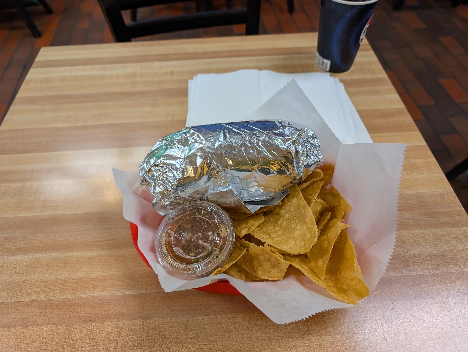 Read moreI came in with a coupon for free queso, so I got one of those and a veggie burrito. The overweight and not friendly guy at the register was not helpful and seemed annoyed that we were there. The queso was good, but they gave me a tiny tiny container and would have to charge me a $1 for another tiny container. I brushed if off, even though the only reason I went there was for the coupon. I then had a bite of the burrito. The veggies were soggy and had too much water and drenched my burrito to make the whole thing soggy. I threw it away it was so nasty. I wasted $20 and you will too. TERRIBLE SERVICE, TERRIBLE FOOD....
