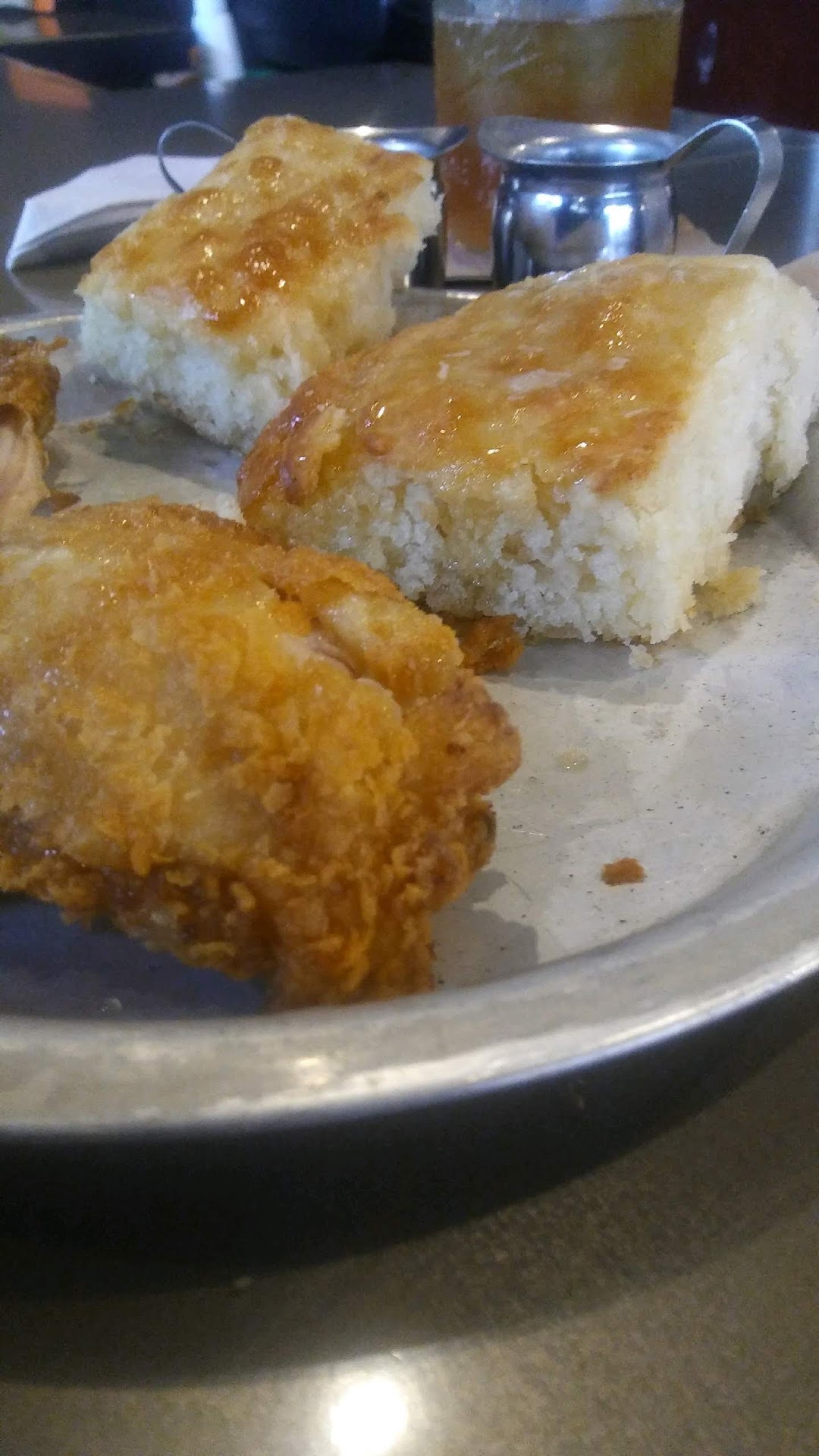 Read moreIn Raleigh for a college tour and we wanted a simple restaurant to try out for dinner and obviously we checked out the reviews for restaurants in the area. Me being a fan of Chicken and Waffles, I said say less. We arrived at the restaurant and were quickly seated, got our menus and unfortunately, we waited. On the night we visited, it seems that there was only one waitress but she did the best she could.