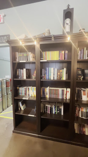 This place is definitely much less of an actual book store and more of a coffee/brew shop. Cool atmosphere and location. It was packed when we were in there on a Sunday, so that's a good sign that it's a popular spot.