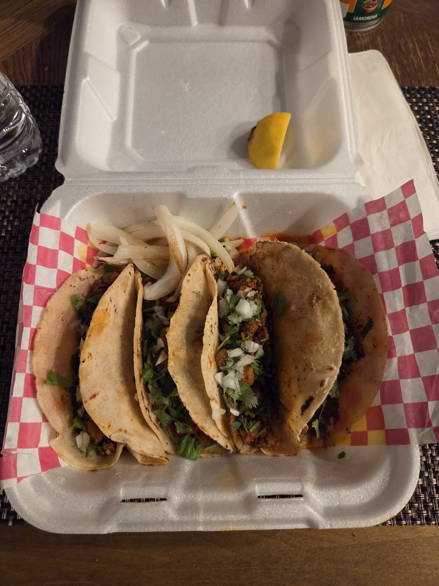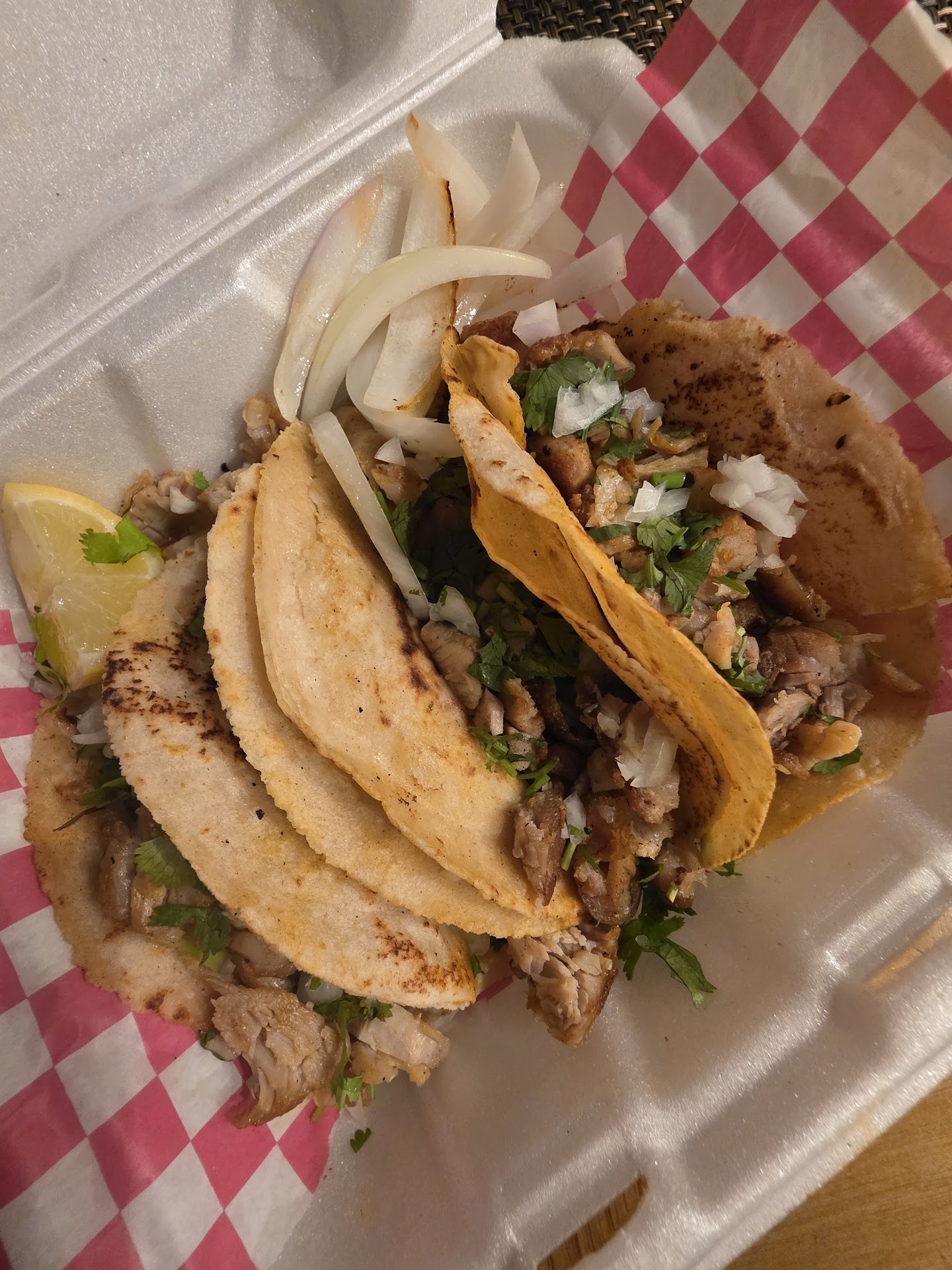 Read moreI think the food is great. They were parked in Zebulon when we ordered tacos. I think as a street taco eater and a reviewer. They need to put two tortillas. They broke too fast. The flavor is very good. Pricey but you pay for the convenience. 5 stars....