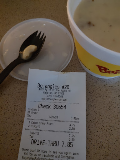 Read moreI regretfully ordered food from this restaurant during the late night shift on Saturday 5/11/24. The angry cashier at this Bojangles (an older, bigger, snaggletooth, blacklady) is just plain disrespectful for no reason. After I politely ordered my food, once I got up to the drive through window to pay, I was greeted with pure hate and anger from this cashier without provocation on my part. I literally did nothing to her but smile and simply asked her for my receipt and the correct salad dressing. She ignored me at first with a nasty attitude, then she insisted the items were in the bag when they were not. When I politely corrected her about this and asked for the correct items, she angrily and reluctantly complied with an evil stare at me as though I was somehow responsible for her miserable life and terrible appearance. Her co-workers seemed to find her rudeness towards me to be funny, which shows their unprofessionalism and lack of intelligence as well. I work in customer service also and even on my worst day, I don't treat my customers like this. There is NO excuse for her behavior. If this cashier is so unhappy working here, she needs to take accountability for herself by finding another job rather than lashing out at the customers like myself who speak to her in a respectful manner. I don't recommend anyone visit this Bojangles. Save your money for an establishment that requires good customer service from...