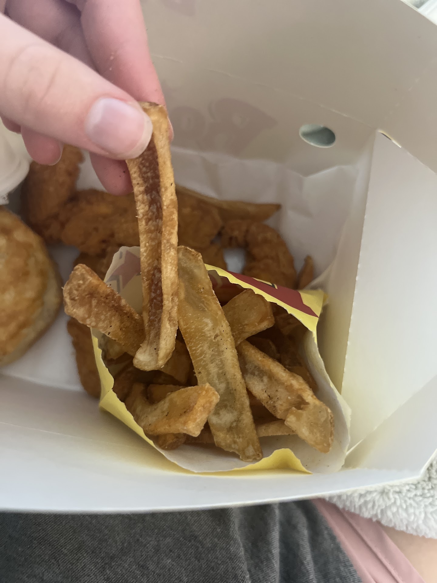 Read moreI should've known when I walked in and it was a ghost town this wasnt going to be a good bojangles experience. The bathrooms, fine nice, clean enough. I ordered supreme dinner because I wasnt sure how good the filet biscuit would be after cooking under a warming lamp. They didnt give me any sauce just dropped the box and ran off... however I never order this so I forgot to ask for some. That one's on me. My tea lid was crushed in so I went to top it off with some tea, the self-serve was empty. Thats when I noticed the swarm of fruit flies. Bad bad. I sat in my car and ate, every bite was dry af, fries were terrible, biscuit dry but undercooked, chicken just might as well be jerky. And later once I finished my tea including the melted ice, I looked in my cup and saw fruit flies.... this is a newer location I will never...