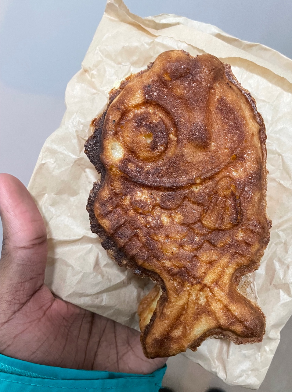 taiyaki was hot and delicious though, we tried the chocolate and the boston creme kind and shared both.