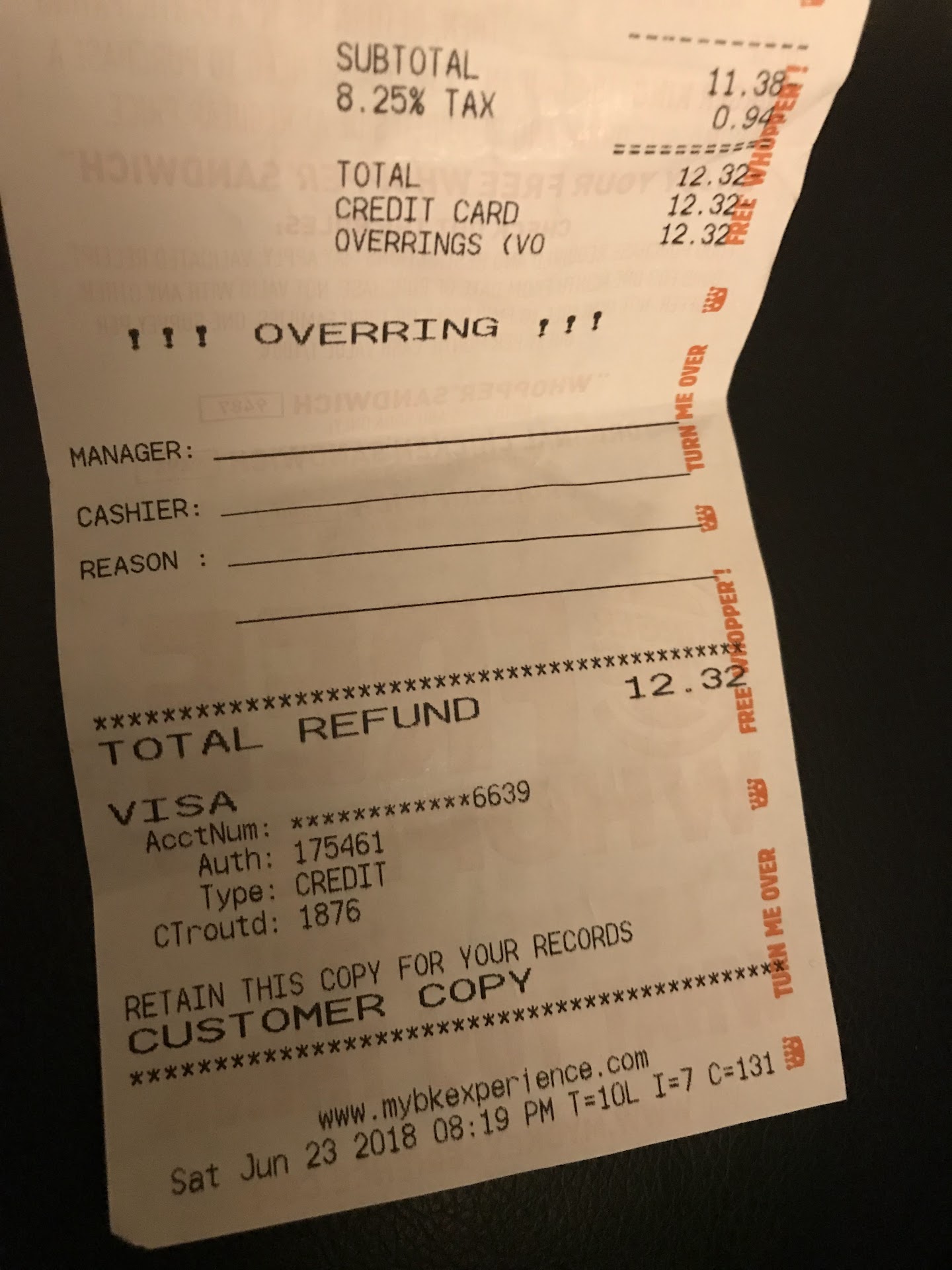 Because food always makes me happy I waiting but out of curiosity I wanted to see if anyone else would get pulled. And low and behold the car behind me did as well. That lets me know they probably had everything off or had taken everything off the line to be washed. Or both. But I waited....and waited...and waited. 16 mins to get 1 whopper meal. No special requests and it’s literally the most popular menu item I assume. This really hurt my soul because there is a McDonalds across the street that I don’t like as much but will have to visit from now on. My food was fine except for the fact they never gave me a drink with my meal. It was a bottle of water. If whoppers were a penny Id say its not worth it at this restaurant. You’d waste more money in gas waiting for your food with...
