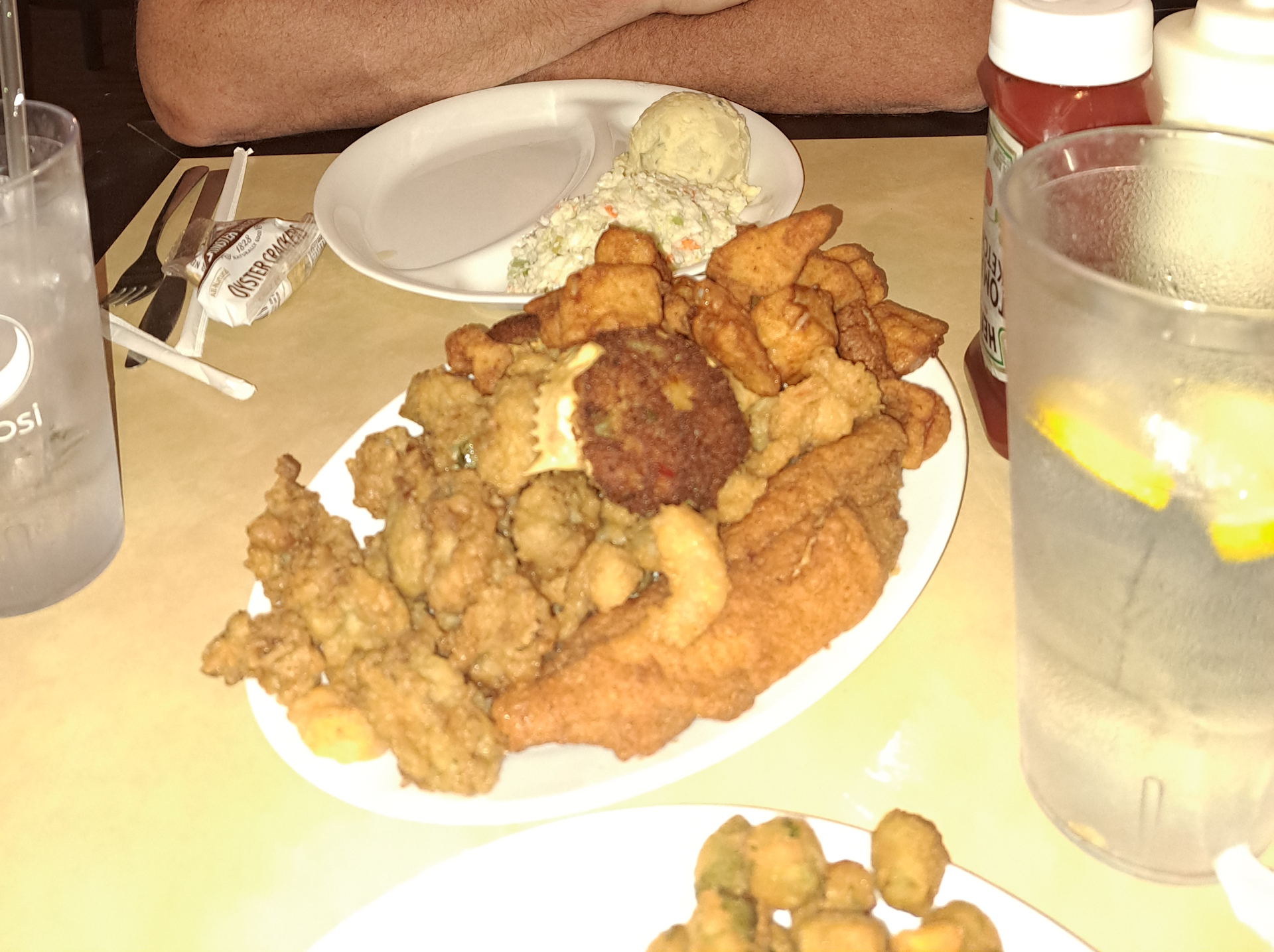 My wife and I had the fried croaker platter with side salad and lima beans. We forgot how bony that fish is. Be prepared to sacrifice time to enjoy a well seasoned and tasty fish. That meal brought back so many memories as I grew up in the Carolinas eating fried croaker on white bread and smothered with Frenchâs mustard. Regrettably, the lima beans were rather overcooked thereby depriving them of any nutritional value or crunchy texture to accentuate your meal.