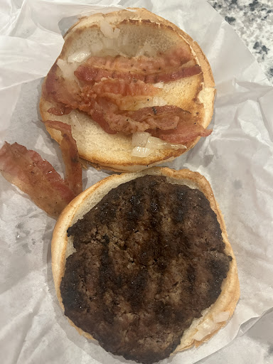 I typically order the quarter-pound steak burger with fries. I add lettuce, bacon, cheese, and mayonnaise, and I add pepper after I receive it. The burger is always cooked to perfection. I have yet to have a bad order of fries here, but that's not the good part. The fries are super-hot, perfectly salted, and absolutely delicious. I wish they offered a large fries option. Even so, they do put a generous helping of fries into the bag. (McDonald's, take note!)