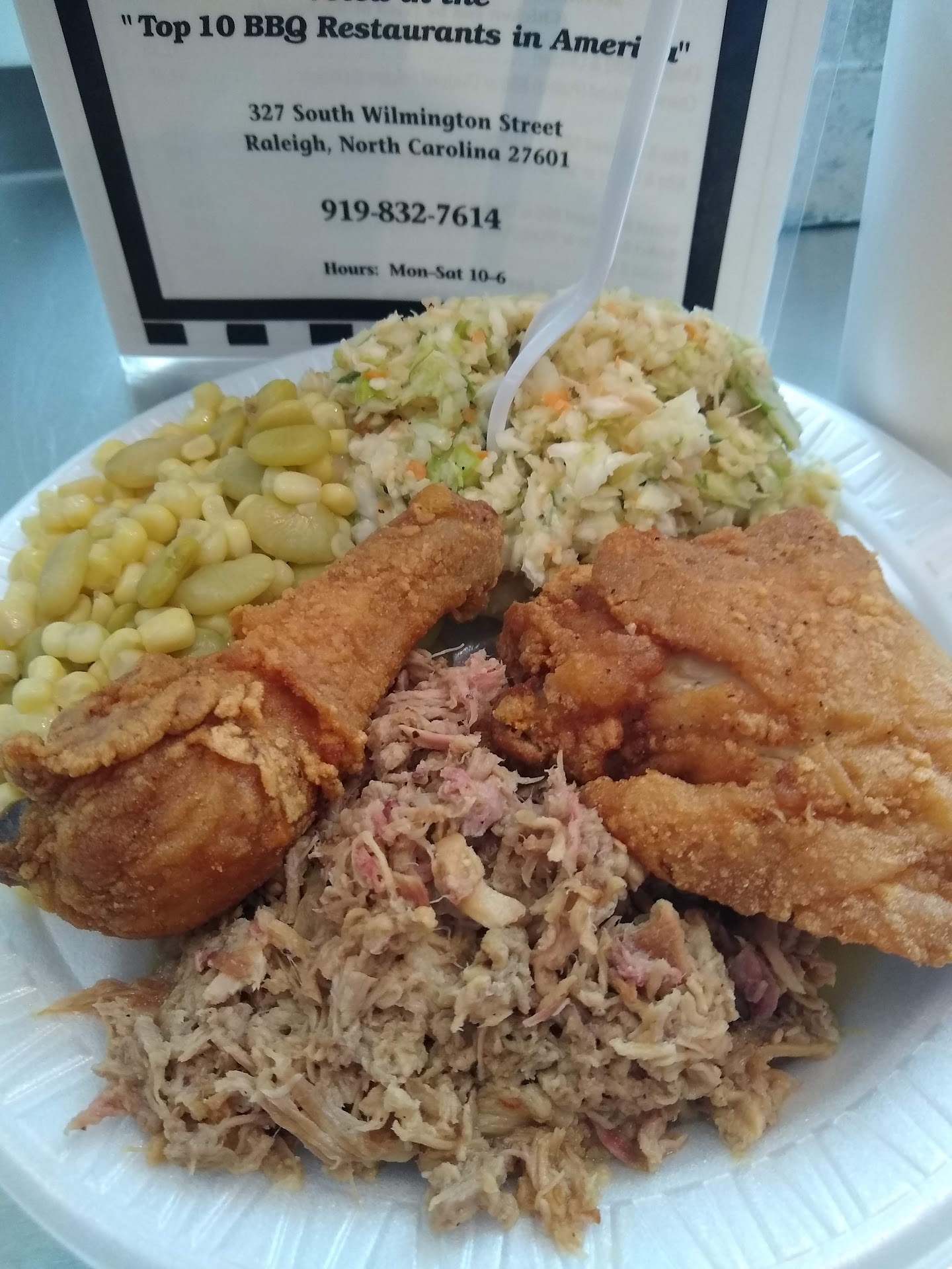 Read moreI am biased when it comes to BBQ being born and raised on Kentucky Pit BBQ, but that doesn't mean I don't enjoy explorering the variety of BBQs across the U.S. I really like the story behind Clyde Cooper's and the longevity behind the business and recipe. I enjoyed the simple touches like how everything comes on styrofoam. It reminds me of BBW picnics as a kid. I liked the sugary sweet tea and the fact that the waitress filled the cup so I could take it to go. I liked the southern charm of being called sweeties by the waitress. I appreciated the recommendations from our waitress. I wasn't going to get the fries chicken, but after she said she could eat her wait in it and couldn't pass it up. So let's talk about the food. The chicken was crispy on the outside and moist inside. It didn't feel greasy and it wasn't over seasoned. I also had the chopped BBQ(pork shoulder) that they were founded on. I was wetter than I'm used to with pit BBQ and was missing that punch of smoke, but it was flavorful without being sauced. Speaking of sauce. I enjoyed the single vinegar based sauce. I do wish there was some variations however. It did a great job soaking into the pork, but I don't know if it would pair well with brisket. The sides we're good. The butter beans and corn were a welcome suggestion from the waitress and the Cole slaw was crunchy with a hint of something unique that gave a little bit of sweetness. The meal came with fries skins that people will either take or leave and hush puppies. The hush puppies were worth the trip alone. They are not your fast food fish chain style of hush puppies. These are finger length fried delicacies that are crunchy outside and hot on the inside for the duration of your meal. They have that comforting sweet corn meal taste that you have to restrain yourself from eating in their entirety before your meal arrives. Overall I am glad I chose Clyde Cooper's as my one and only Raleigh BBQ stop. KEEP IN MIND until recently Clyde Cooper's only accepted cash. They now accept credit card but there is an...