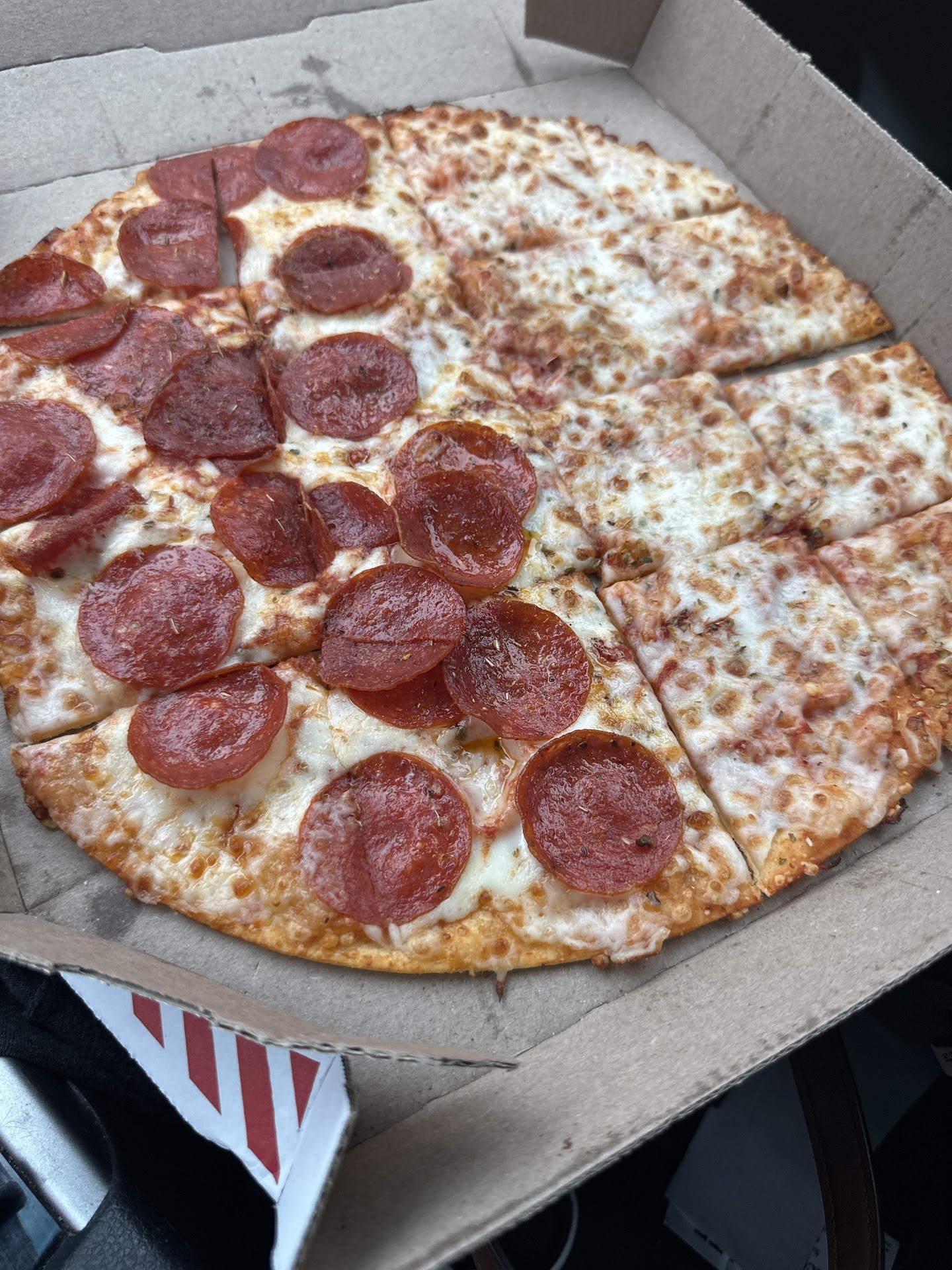 Lack of Notification: I was not notified via the app or text that my order was ready, forcing me to walk in and ask the staff. Unhelpful Staff: After asking two associates of about 9/10 staff on hand, no one could initially locate my pizza. I was eventually pointed to a red receptacle with a flap, rather than being properly assisted or shown where my pizza was. Cold Pizza and Incorrect Toppings: When I retrieved my pizza, it was immediately cold. I had ordered extra cheese blend, but the cheese was sparse and definitely not “extra.” Poor Quality and Presentation: The pizza was poorly cut, and when I tried to pull it apart, after roughly tugging, it ripped into shreds. I have attached photos as evidence to show the lack of care, cold temperature, insufficient cheese, and how the pizza tore apart.