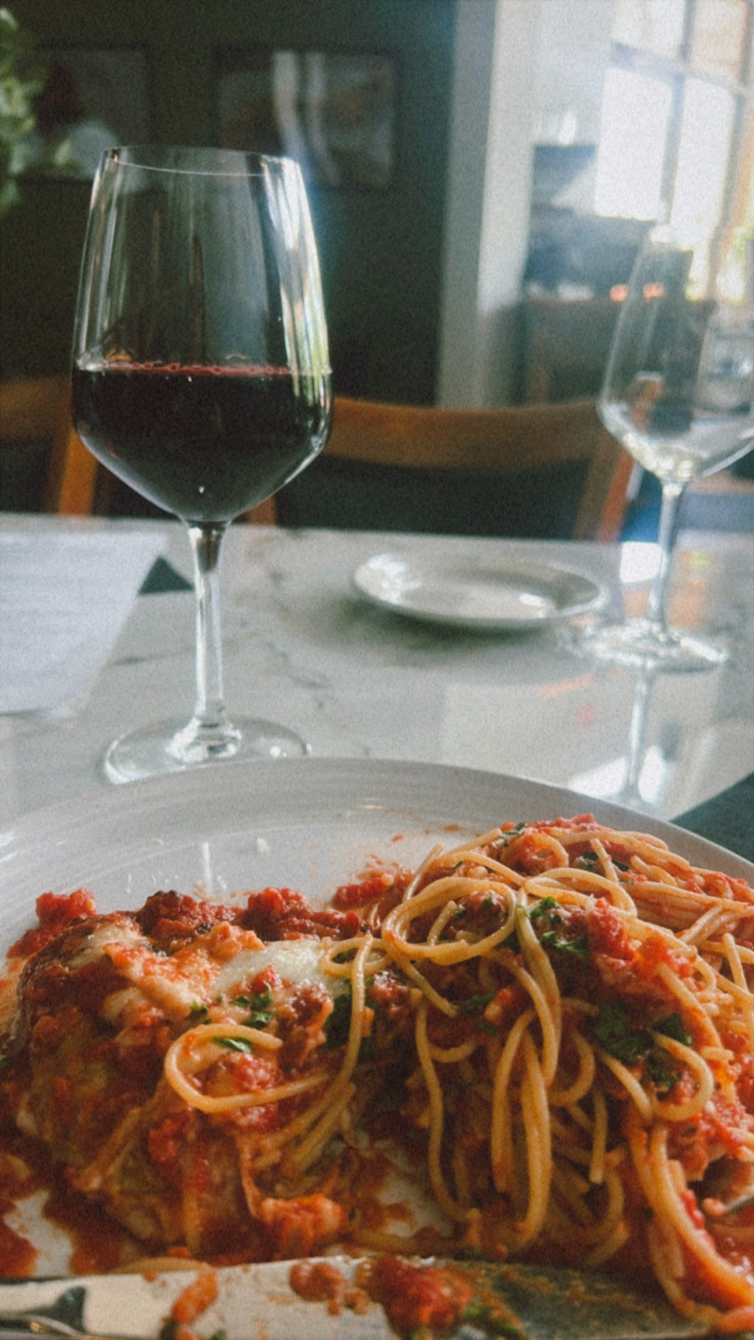 We each ordered different wines by the glass and liked them all and they brought fresh baked warm rolls w/oil, balsamic & herbs. We started with a beet salad and Caesar salad and agreed they both were delicious. I loved the Caesar dressing which was very garlicky and traditional. For our meals we had the lasagna, the veal chop w/spaghetti and 2 gnocchi w/beef tenderloin. Each meal was a 10! Extremely fresh ingredients, piping hot, we couldn’t decide which was the best but that veal chop is “man-sized” and cooked perfectly at medium rare.