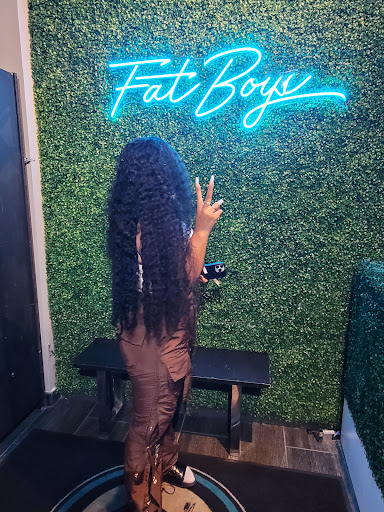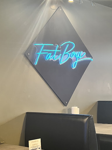 when I saw Fatboy's, I looked down at myself and said, "This may as well say Jermaine's Kitchen" because who am I kidding? I'm a big boy! the graphic on the wall made me very happy because I am all in for supporting locally owned Black owned businesses. The facility is modern, well furnished with comfortable, sturdy seating at two different heights. There is seating for 114 inside, and easily a dozen more outside. Lighting is adequate, even with the decor being largely grey on black.