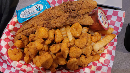 But you probably aren't overly concerned about the atmosphere, you want to know how the food is. Well, first of all, it's reasonably priced. One can get a complete meal here right at about $10 if one arrives between 11am and 2pm, or between 4pm and 10pm. I had a fish, shrimp, and fry basket that was $12.99 before tax. The crinkle cut fries were crispy outside, light fluffy, and steaming inside. It's really easy to get fries wrong, so it was worth leading with them. The fried shrimp were small, but served in abundance.