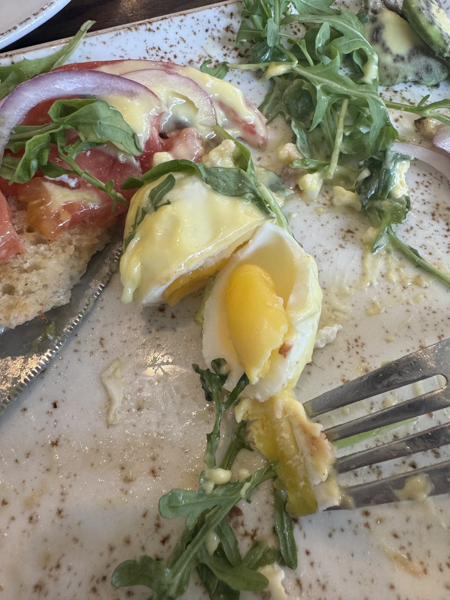 Do not get the eggs Benedict. I don’t often not eat the food on my plate- I may say food is overpriced or wasn’t good quality- but this was just outright gross and the proportions were extremely small for their price- I’d be happy if the quality of food was really good but it was neither. The poached eggs were overcooked to the point they looked like boiled eggs- the yolks were a nauseating texture that made me loose my appetite. The first warning was the two meager slices of molding avocado tucked off to the side- I asked for more but the waiter brought only just more spotted black avocado- which when I sliced into only revealed more black- they weren’t even smooth but bumpy slices too. Our server was doing his best and gave great service despite the food, but he admitted that this is the best they had on hand- at that point the people making the food should not be serving any avocado! It’s ok to be out of stock of something, but serving bad food? No. I get avocados are hard to always serve perfect- I get that a few spots or browning is ok- but this was basically rotten! The hollandaise sauce was also very watery and lacked any flavor- it was gross- like…like mucus and I hate saying that but it just did- and I love hollandaise sauce. The menu also said I could either have the “lemon dressed” organic mixed greens as my side or potatoes… which was basically just spinach and greens- we’re really making toppings aka the lettuce part of a BLT entree- its own side now? if there was lemon- I didn’t catch a whiff of it. Another one of us got the omelet and while definitely better- although all the omelets I saw were spongy and overcooked. Maybe if we had gone for the sweets it would have been a different experience but the lack of care the kitchen gave our food does not give me any faith that it would made properly or sanitarily. The drinks were the only great part of the meal. I will sadly not be coming again. This was my first experience at a First Watch, I may eventually try a different location but not any time soon- and...