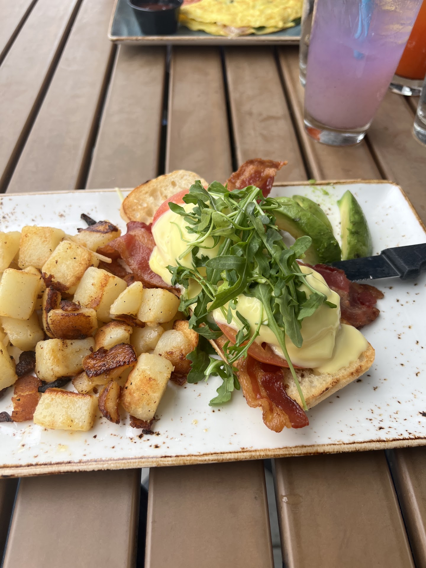 Read moreI came in early Sunday morning and was greeted by one of the friendliest faces I've seen in a long time. I'd like to say I'm exaggerating but I'm not. She sat me alone as I was waiting for a buddy of mine to roll out of bed and meet me. I ordered a Bloody Mary and she informed me it was to early to serve it but she would be more than happy to give me a virgin one with a smile. Her smile made me smile too, so I said sure, that would be great. As she went to get the tomato juice, I possibly added the rest. Jk. Anyways, I finished my early morning tomato Mary and left a tip for service Picked up my friend and returned an hour later. This time to handle brunch business on the rocks. Maybe it's just me but we had a seriously pretty lady as our server and she was on her game. Turns out the first server earlier told me that our current server was showing her the ropes. The first server told me that she really looked up to the the supermodel waiting on us at the moment. I thought that was a very human moment that we should all hope to see more of. So when the food came it was hot and really flavorful. The brunch alcohol exceeded expectations compared to other spots. The place was packed and delivered on every dining experience checklist a man can have. Food: way above average for breakfast. Drinks: Fun and worth your money. Atmosphere: not one crying kid🤣.jk I love kids. Atmosphere was comfortable and you only needed a low talking voice. Service: For 2 experiences in one morning, I have to say they were both very inviting and attentive. 5 stars for sure. Would highly recommend. But if you get the same server I left my number with......I mean a tip with, your in good hands. And the young mini her she's training is just like her. So basically, go there if you have eyes to see and...