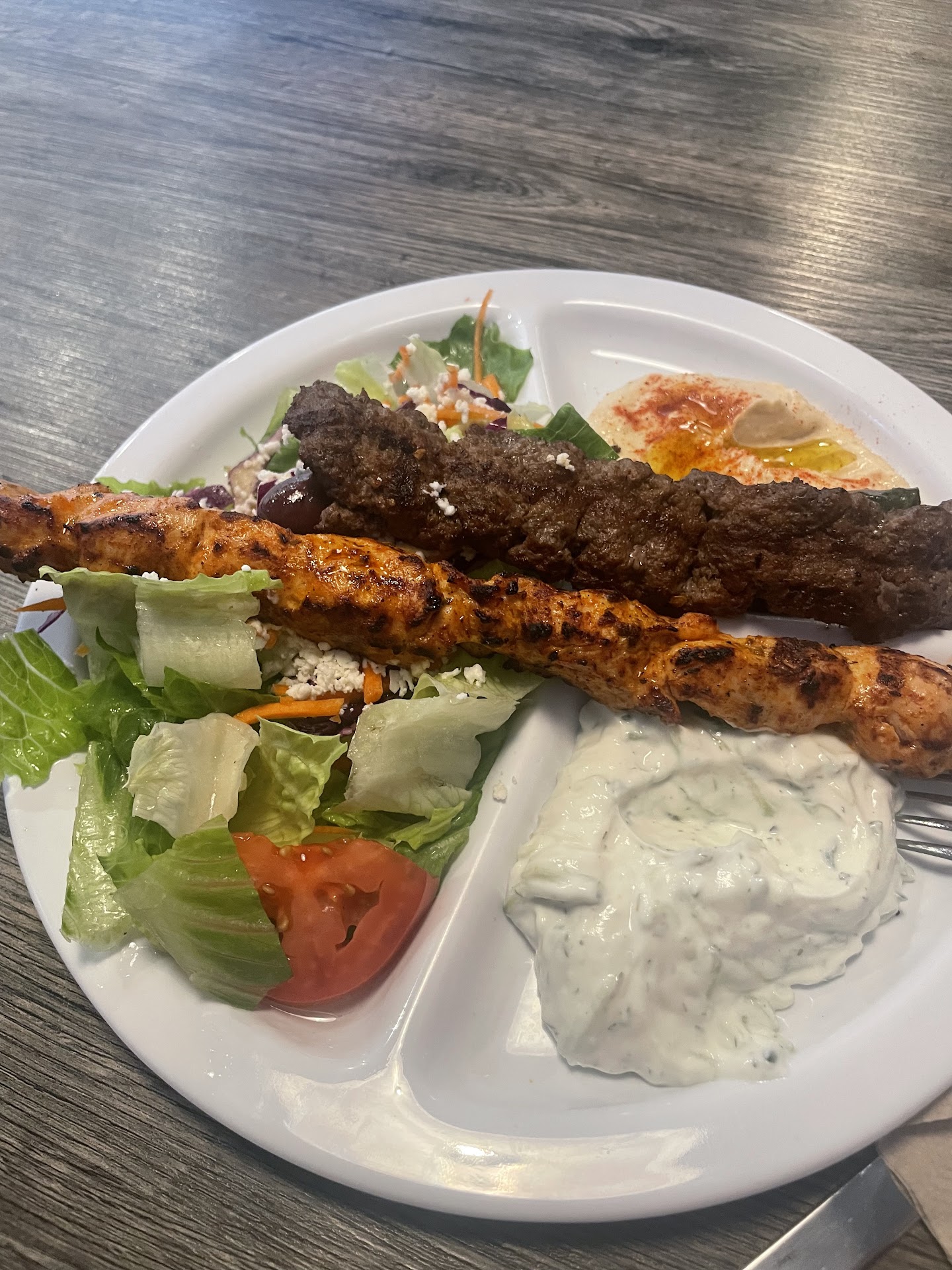 I came to this restaurant at 11:15pm on a Saturday night after a long day of work, wanting to try Greek food for the first time. I walk in and after a minute or 2 glossing over the menu, I chose to order the fries platter with steak. Not a bad order, right? The guy working the counter says they donāt have steak, I tell him itās all good and get the ground beef, all is good. I get it to-go without a receipt and head home, thinking life was good. I open my bag, to a platter full of rice. Not a fry in sight. I have a single kebab/strip of meat instead of the double portion I see on every other picture in these reviews. A lonely, sad, kebab, with a few pieces of pita bread and a whole takeaway box full of dry rice I didnāt ask for. And a drink. For $14 dollars total. Granted, I ate the food immediately and it was pretty good apart from the rice. I would come back here if I got the portions I paid for. Looking at other reviews, I got less than what others did while paying the same price. Did I offend you, person who took my order if youāre reading this? Iām sorry if I did something uncouth or if I was quiet because I was tired but I didnāt mean to be rude. But I donāt see how I am deserving of poor service for this. My night is ruined, and Iām typing here still awake because my stomach is still turning even though I paid for $14 of what I thought would be a quality meal experience. To the students of NC State university, I beg you to find another Greek establishment to satisfy your needs, as if the staff perceive any slight, they will not hesitate to give you pitiful service. Visit a Turkish restaurant instead if you want to support an immigrant community that cares about good food AND customer service. If the restaurant is reading this, I am more sad than angry as I genuinely enjoyed the food I did get, but it was not nearly enough and I got less than what I paid for. You can tell I enjoyed it as I was ravenously hungry when I ate it since there is no kebab or pita left, only the rice I did not ask for.