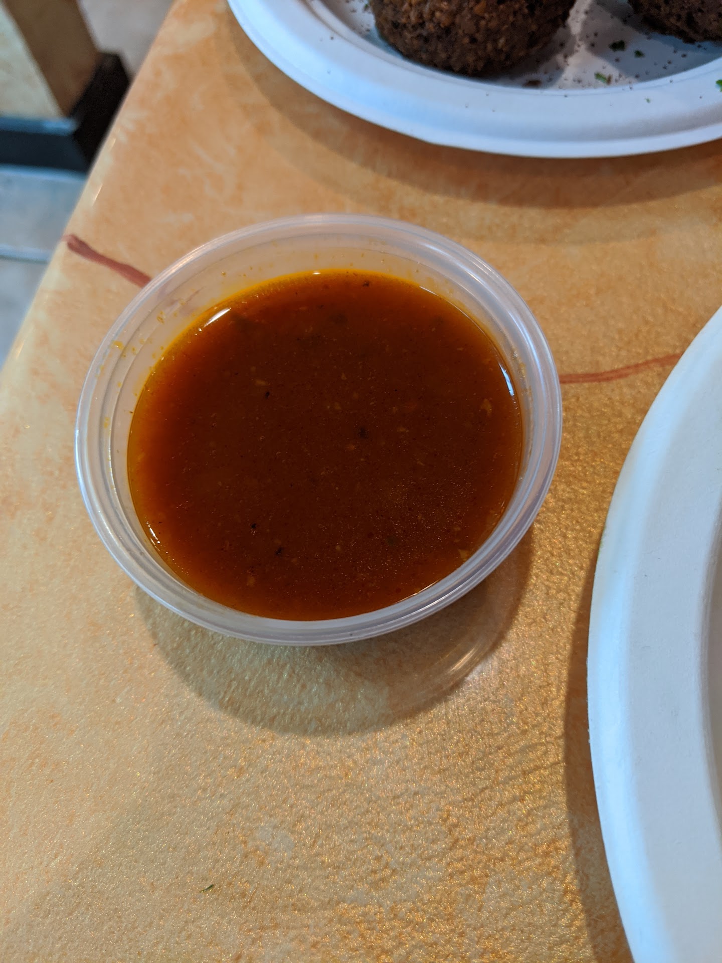The main course held nothing back. The lamb, which arrived atop a bed of rice, was tender and flavorful. I was informed by my server that the key is that it is grilled to order, unlike other places that may merely finish your meat with a sear after cooking it earlier. It had a smokiness that was subtle, not at all overpowering, nor was it absent. Just a hint. The mendy sauce had a subtle kick that made you sit up and take notice, but it was not too spicy that the kid couldn't tolerate it (with a sip of water after each bite when his fork ventured too far to my side of the plate, which was awash with the sauce).