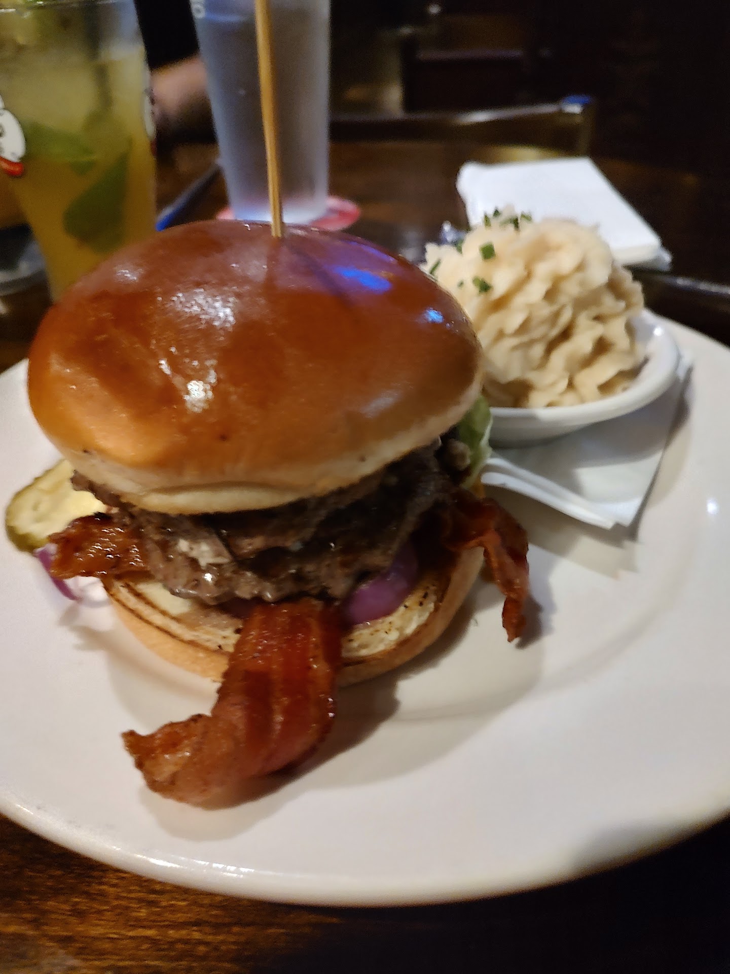 Had a Hanley burger (named for the owner) which included a raw, sliced jalapeno pepper, fried egg and pepper jack cheese. Also, had a cup of Irish stew and two beers.