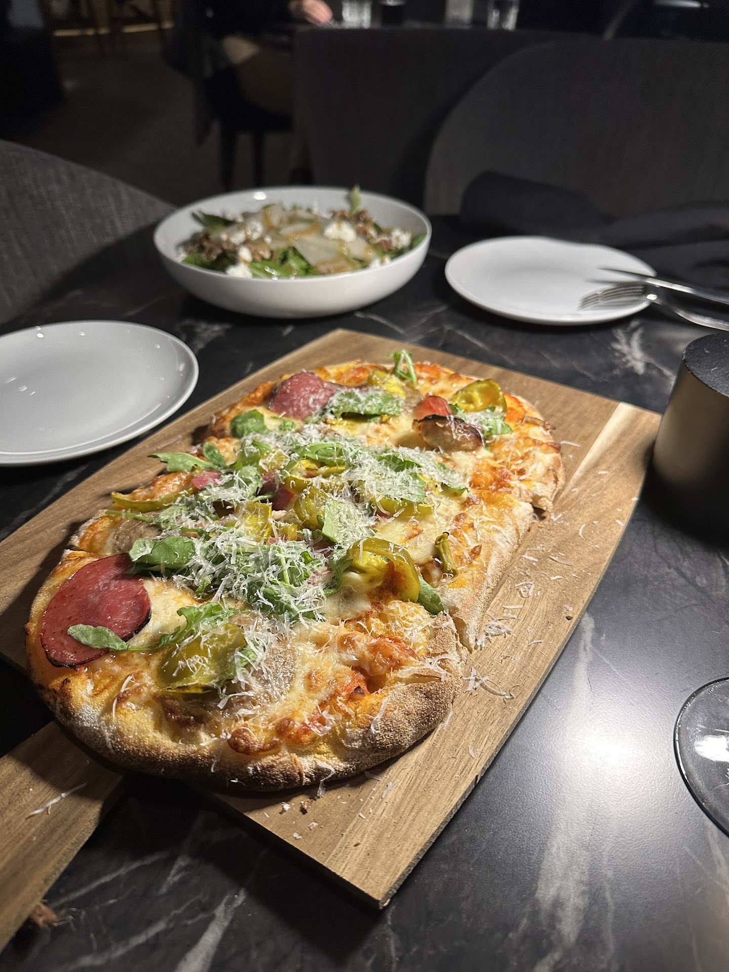 The only thing I will recommend for the atmosphere, is consider getting acoustic sound panels throughout the place. As it continued to get super busy, it got increasingly louder to the point different tables were unlikely able to hear each other at a decent volume, so everyone is just talking really loud with nothing to buffer the sound a bit. No disrespect to the place, but I left there with a raspy voice 😅