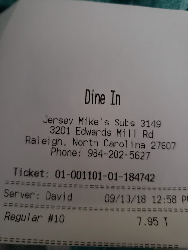 Read moreI've ordered from here several times, usually at night. I now know to NEVER ordered during lunch. Worst experience I've ever had at a Jersey Mike's. I place my order online, like I always have. It says it will be ready in 20 minutes. I arrived 18 minutes after I placed the order. They told me they were working on it and it was almost ready. There were 6 people in line. It was around 1:35pm so they were still a little busy from lunch and I understood. I sat down and waited. After completing every single order of the 6 customers in line they began working on my online order which was placed now, 45 minutes prior. Another customer walks in and they stop making mine to begin and complete that order as well. When I get home to serve the subs I realize that half of the order was wrong. COMPLETELY DISSATISFIED. NEVER GO THERE DURING LUNCH. I thought the point of online ordering was to ensure a timely 'ready when you arrive' kind of meal but apparently not at the Edwards Mill...